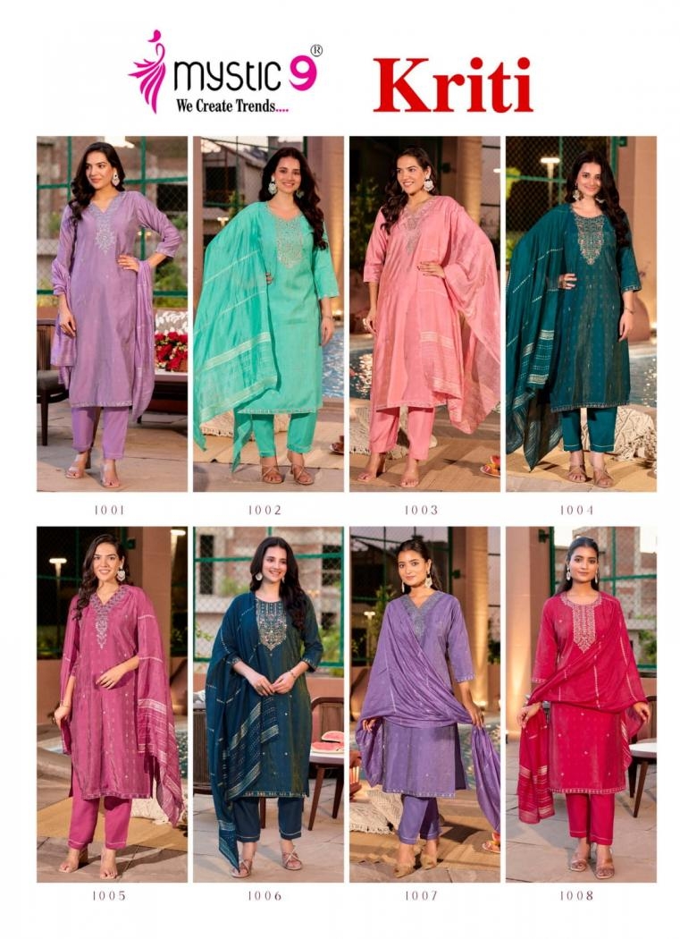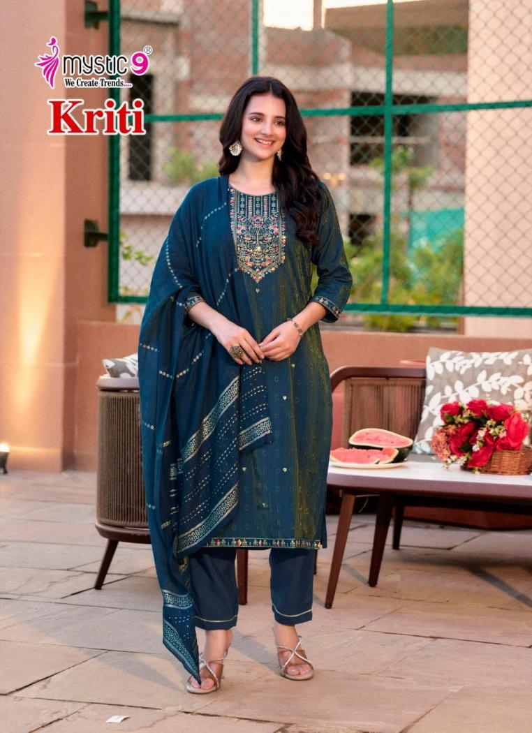 Name: | Mystic9 Kriti Vol 1 Series 1001 To 1008 Vertican Shimmer Dobby Readymade Fancy Suits In Wholesale Surat |