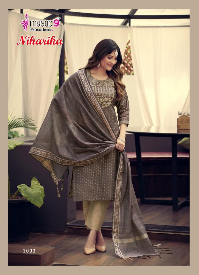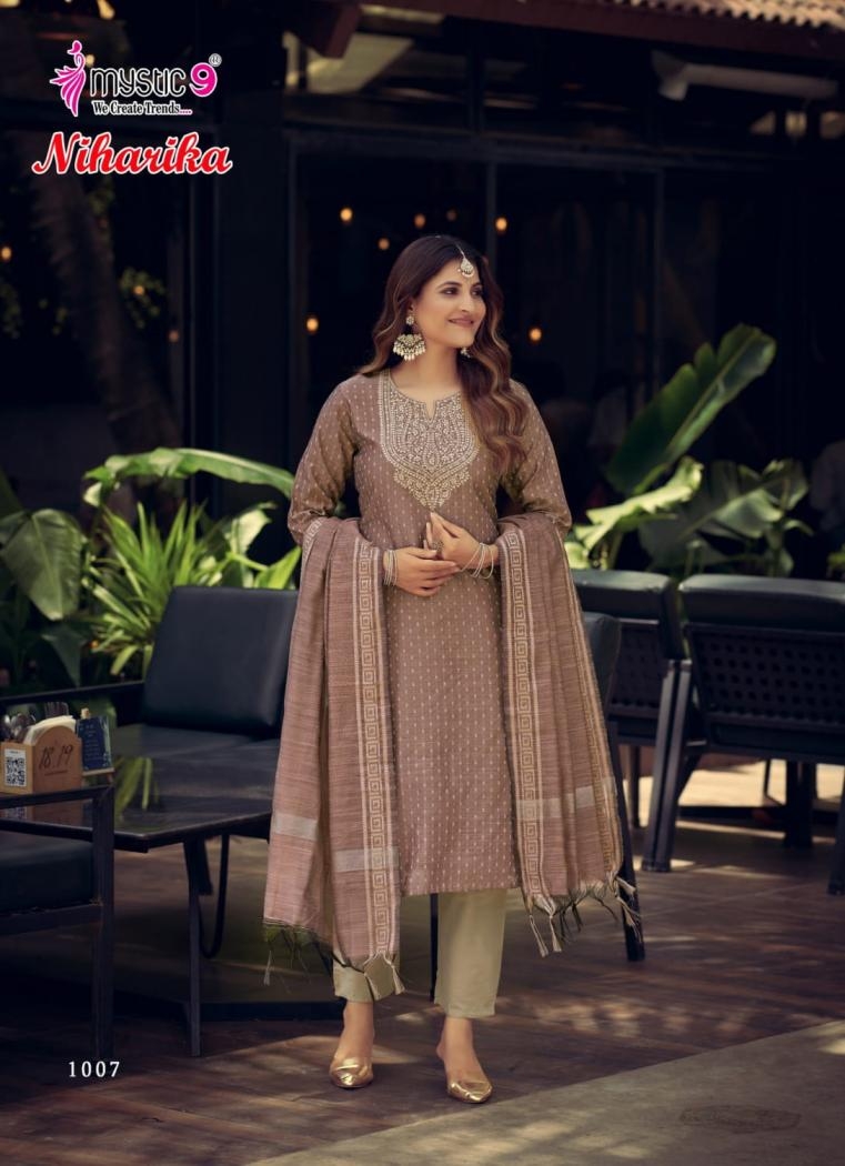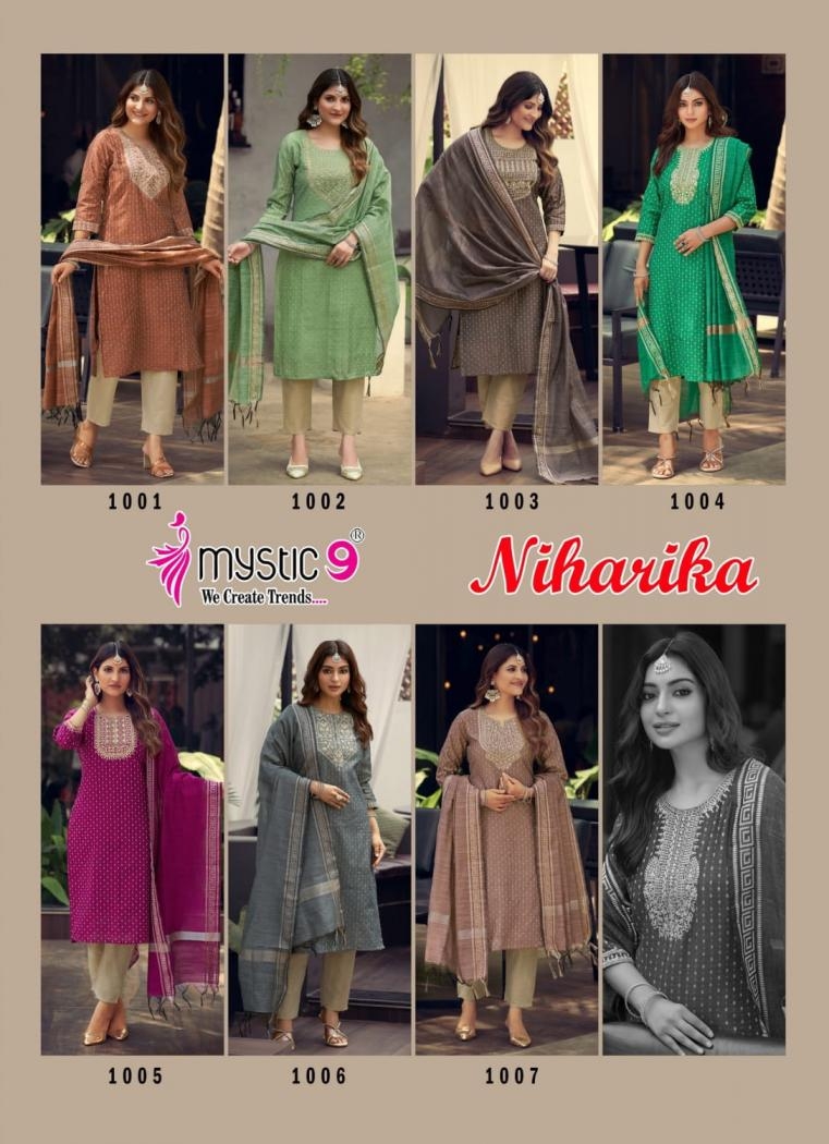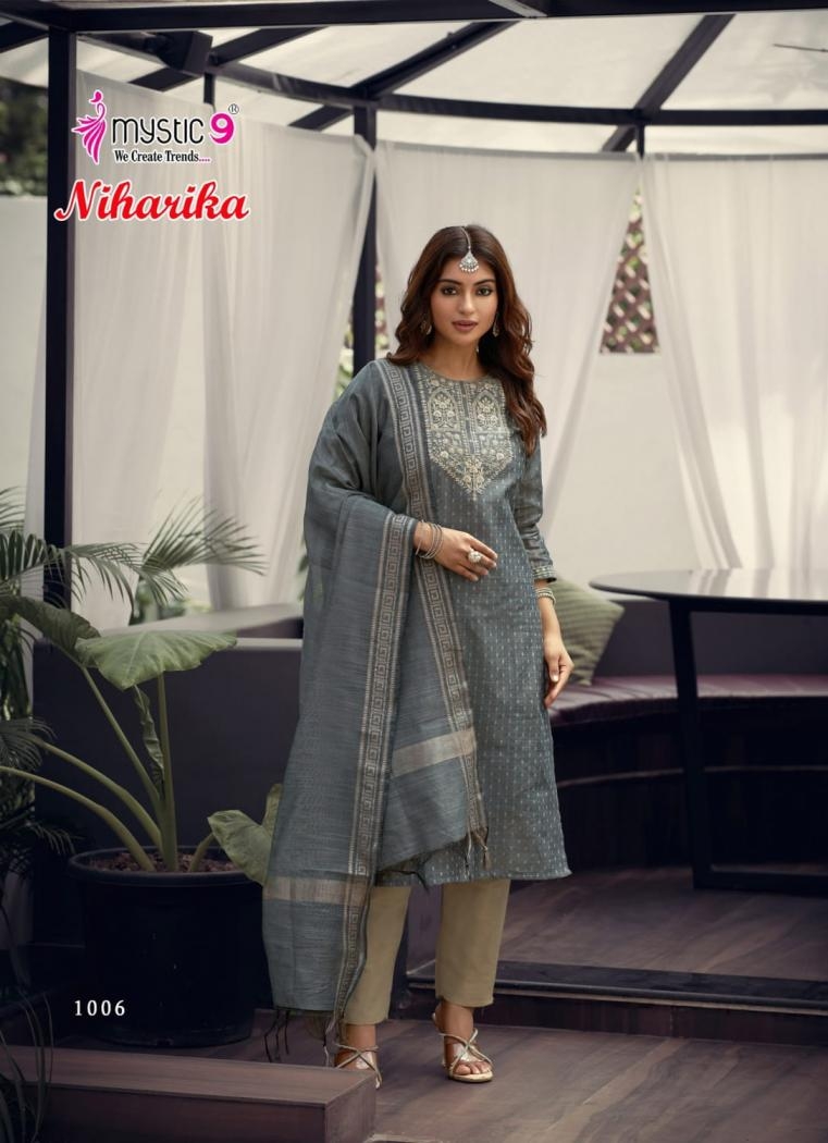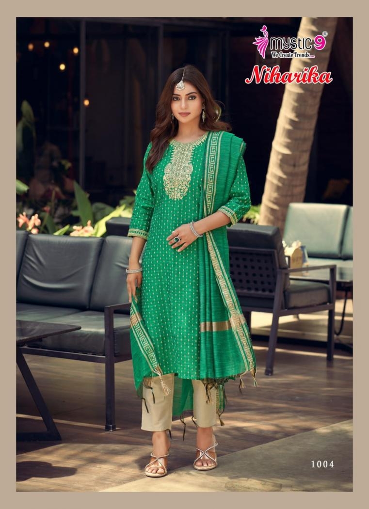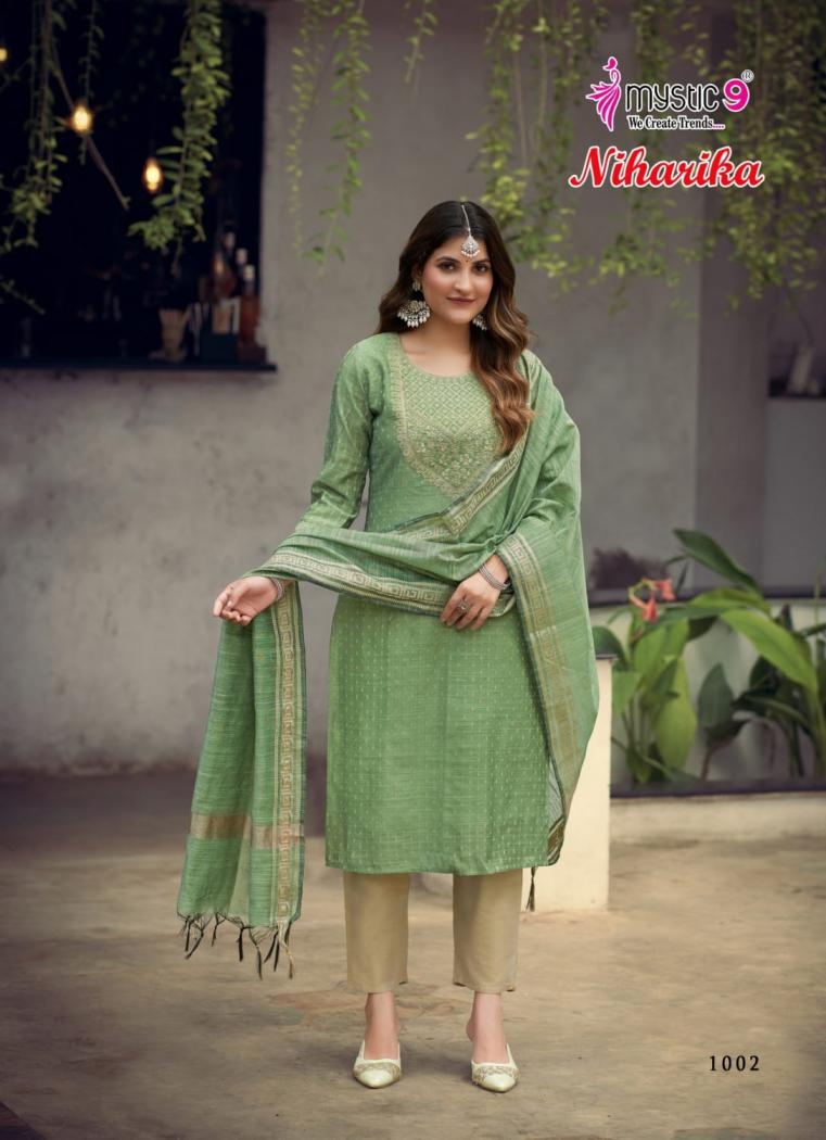 | Name: | Mystic9 Niharika Vol 1 Series 1001-1008 Roman Handloom Silk Wholesale Suit |