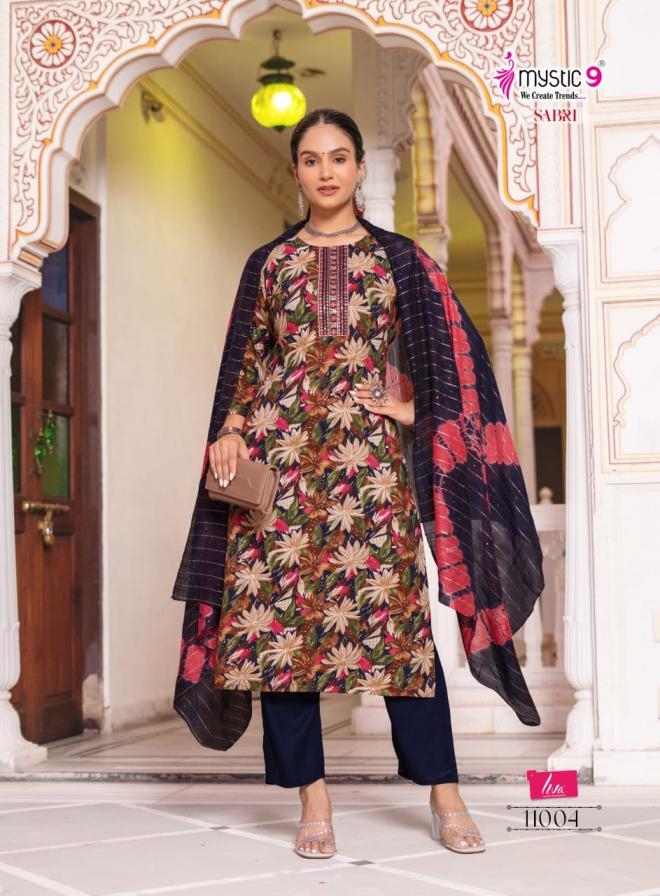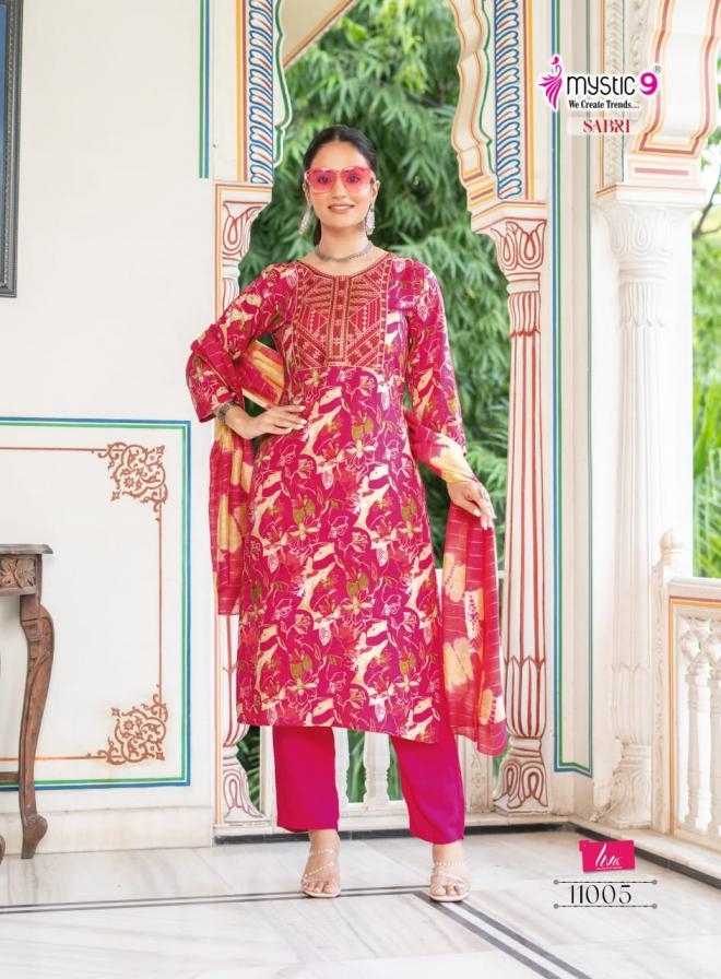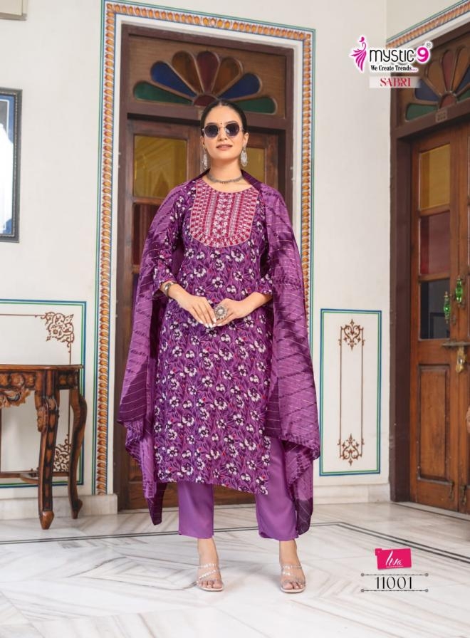 | Name: | Mystic9 Sabri Vol 11 Series 11001 To 11008 Readymade Rayon Elegance Suit In Wholesale Surat |