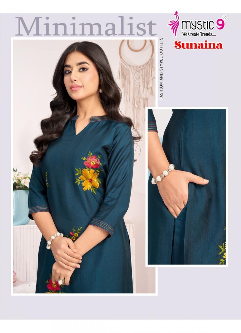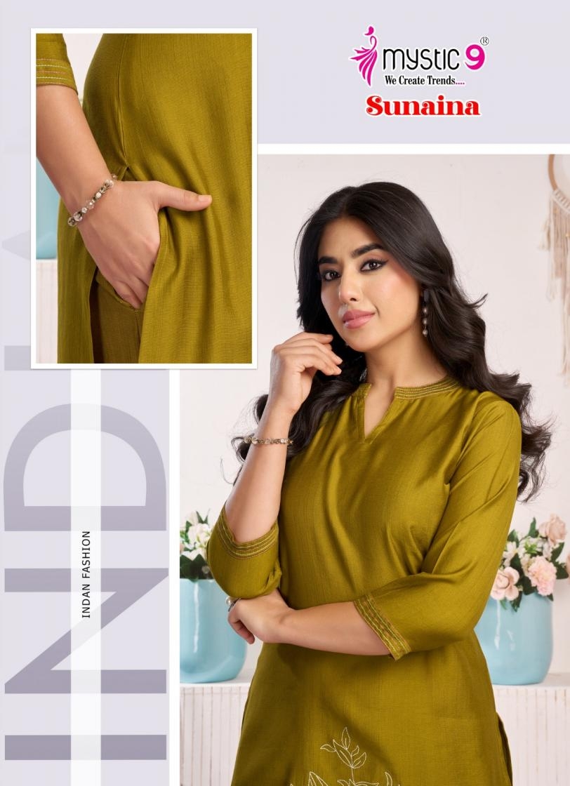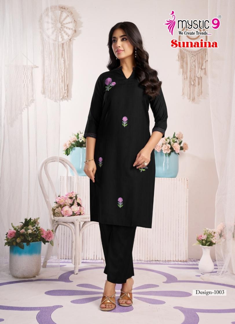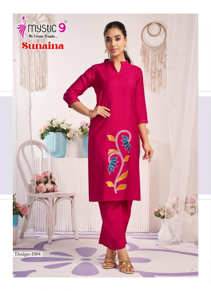 | Name: | Mystic9 Sunaina Vol 1 Series 1001-1008 Dyed Vertican Kurti With Bottom |
