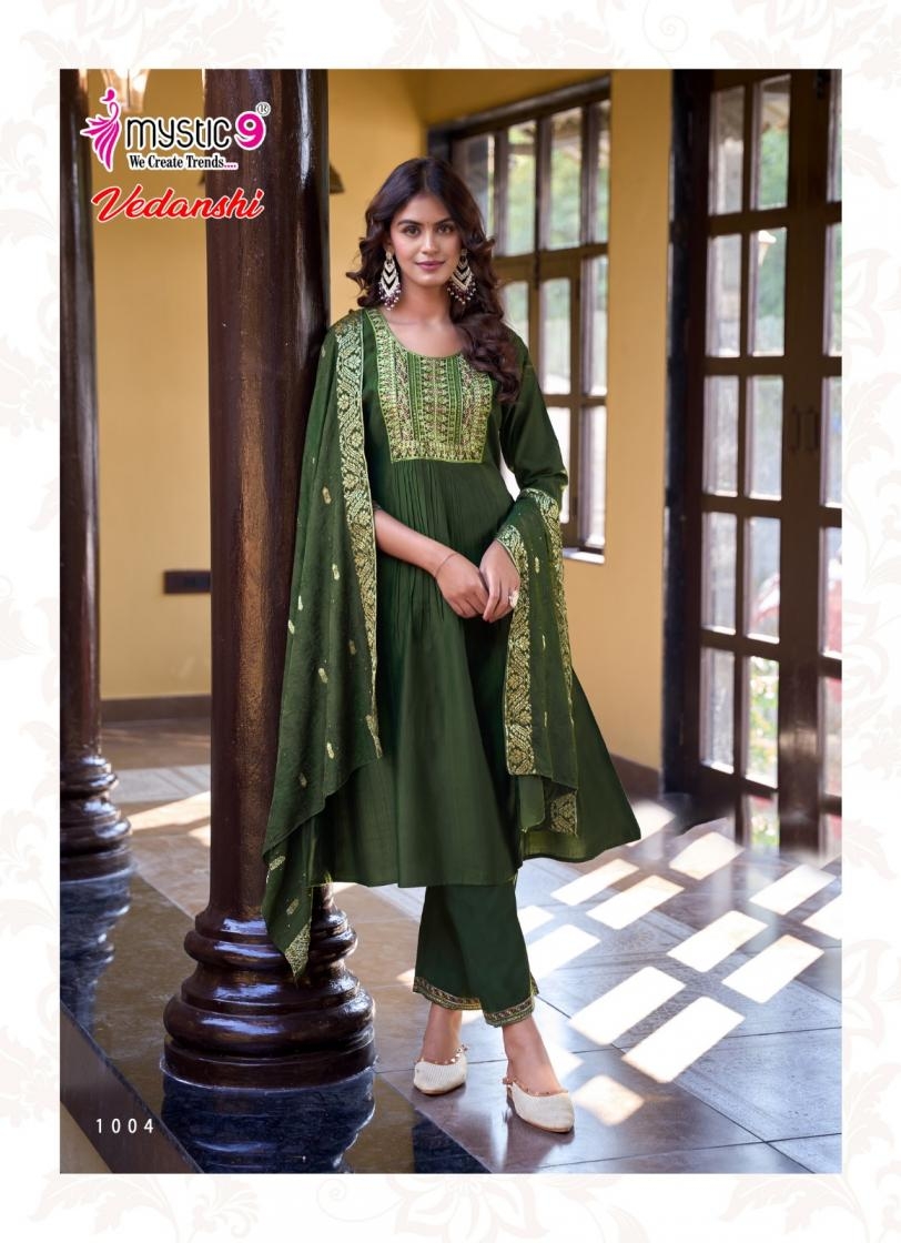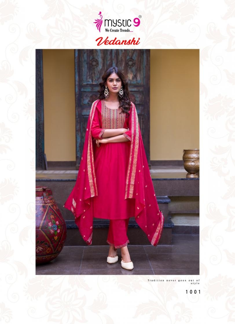 | Name: | Mystic9 Vedanshi Vol 1 Series 1001-1008 Dyed Vertican Wholesale Suit |