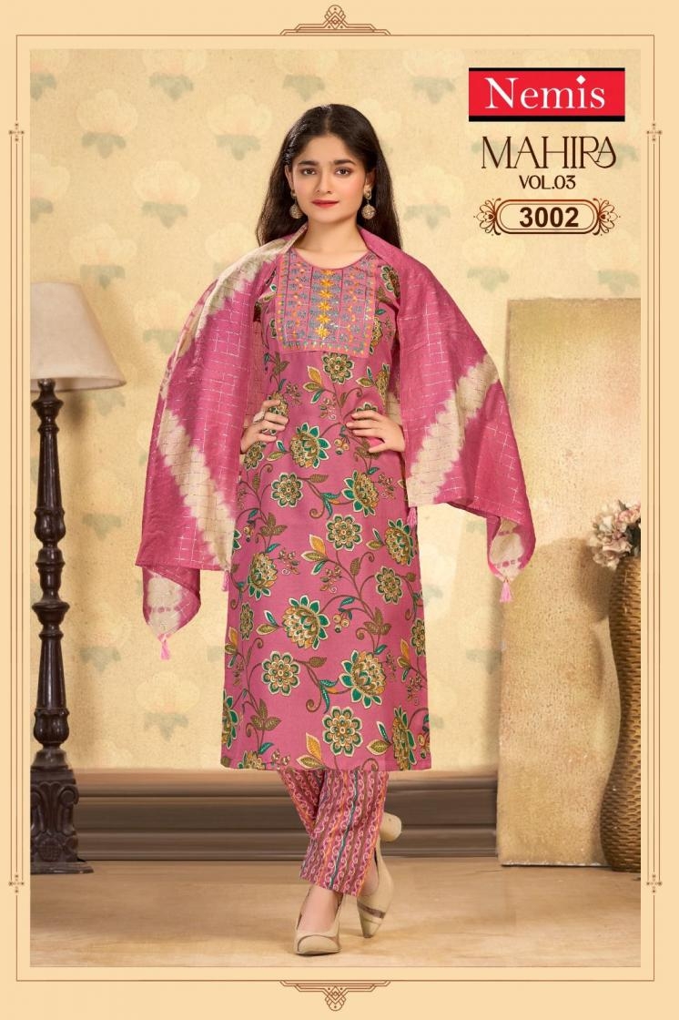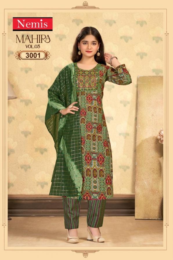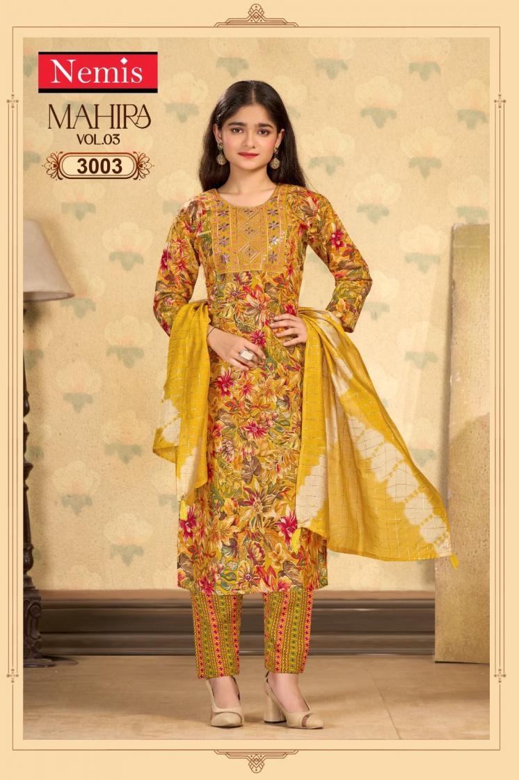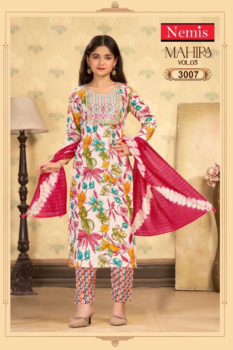 | Name: | Nemis Mahira Vol 3 Series 3001 To 3008 Readymade Capsule Print Stylish Combo Kids Suit In Wholesale Surat |
