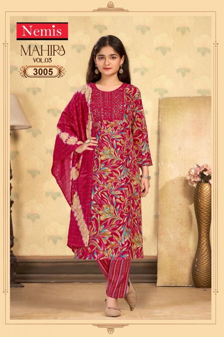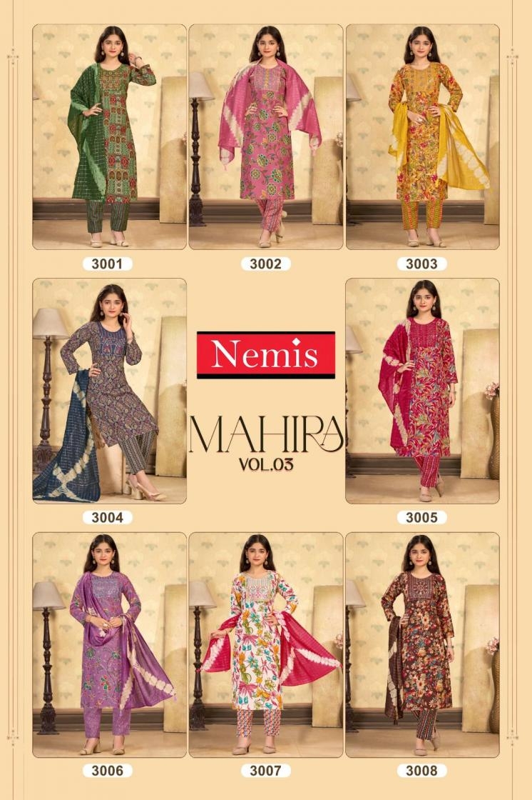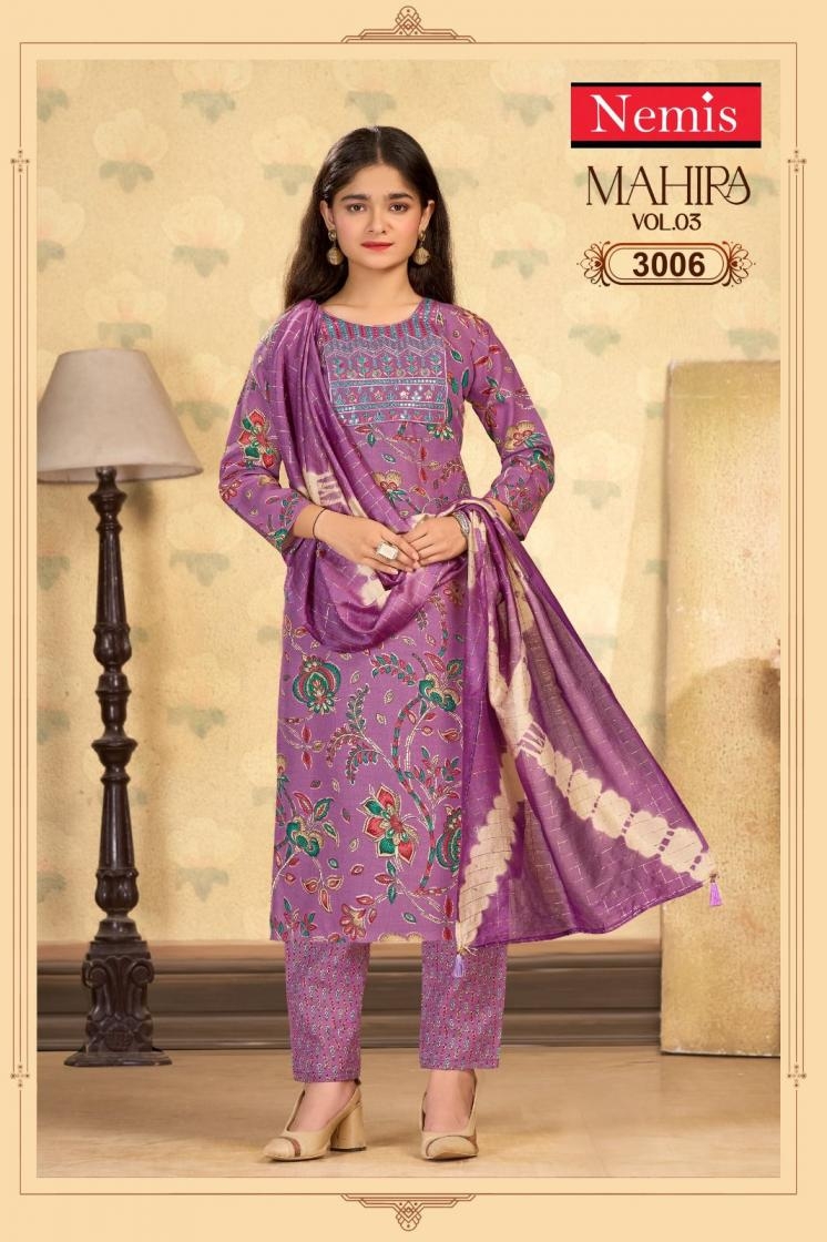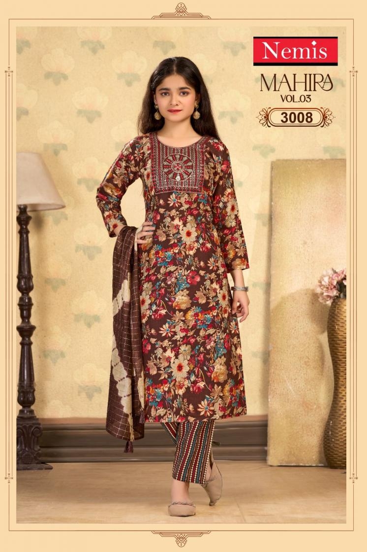 | Name: | Nemis Mahira Vol 3 Series 3001 To 3008 Readymade Capsule Print Stylish Combo Kids Suit In Wholesale Surat |
