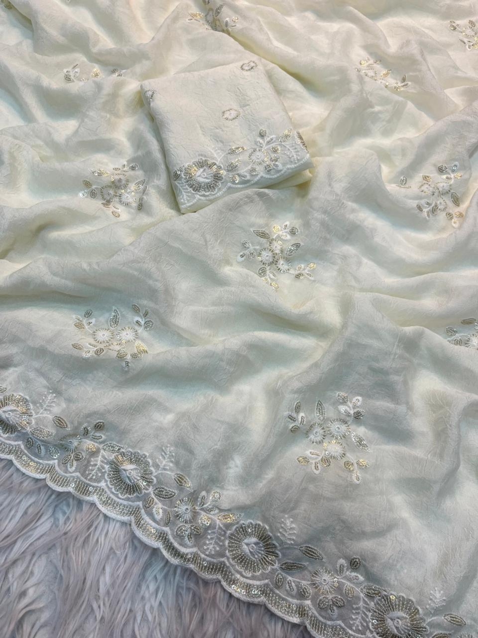 | Other Details: | New Arrivals Fabric :- Crush Silk Saree With Fancy Sequince Embroderiy Work & Fancy Blouse 👚 Rate :- 1250/- Only Gst extra Ready Stock |