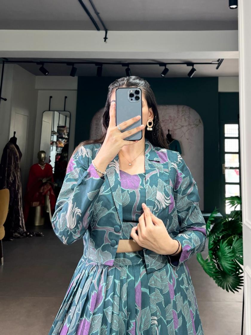 | Other Details: | 🌷Co-ord Set Lehenga🌷 Designed for modern celebrations, this Tasar silk printed co-ord lehenga blends comfort, craft, and couture-like finesse effortlessly ✨ NNK1115TBL Lehenga (Stitched) Blouse (Stitched) Koti Package Contain : Lehenga, Blouse, Koti Weight : 0.900 Kg Price : 1400/- |