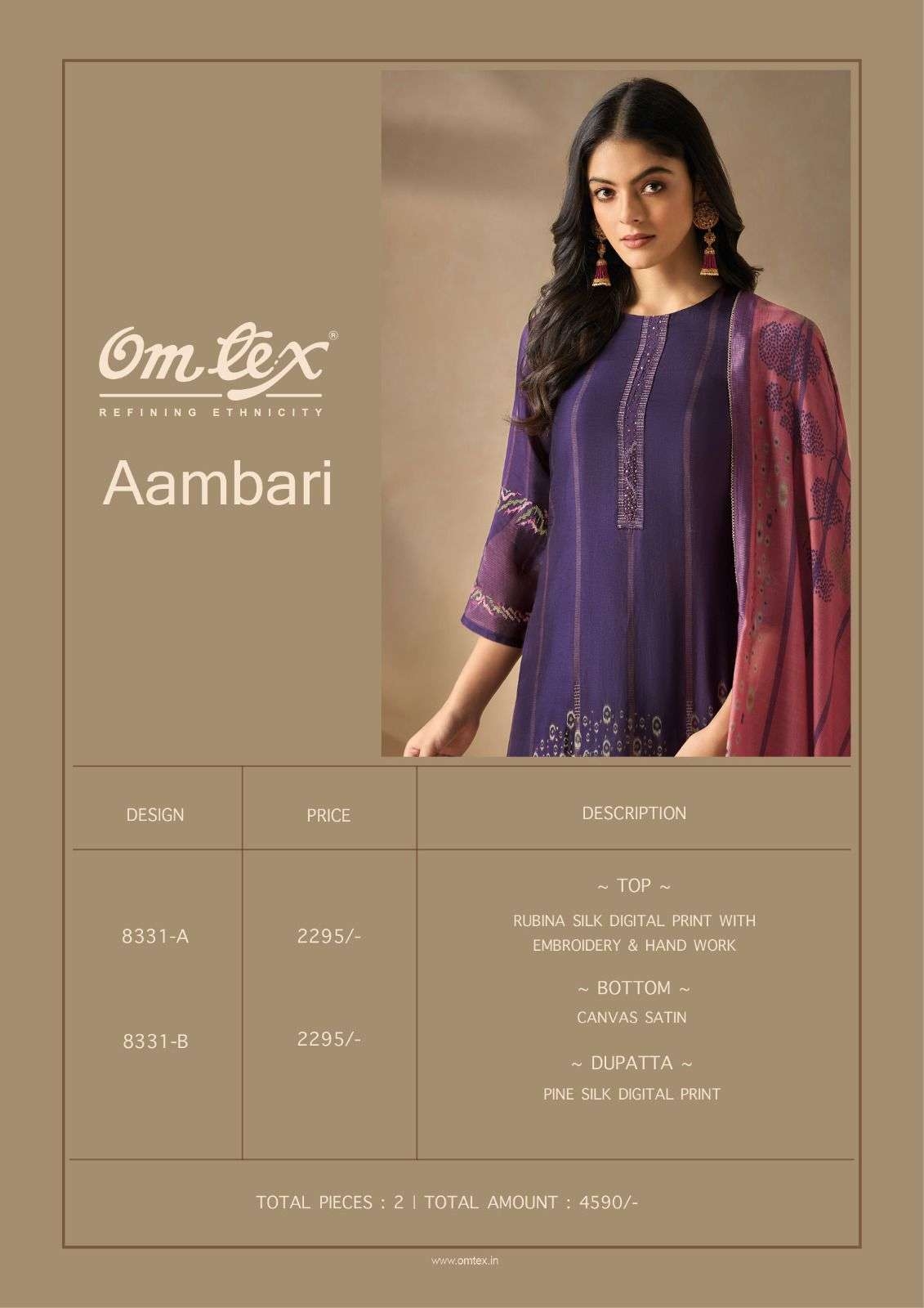 | Name: | Omtex Aambari Series 8331a To 8331b Rubina Silk Digital Print Premium Designs Salwar Kameez In Wholesale Surat |