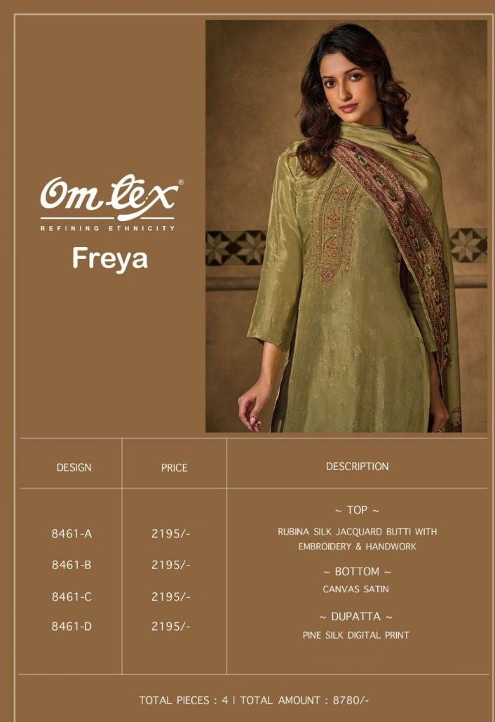 | Name: | Omtex Freya Series 8461a To 8461d Rubina Silk Jacquard Amazing Salwar Kameez In Wholesale Surat |