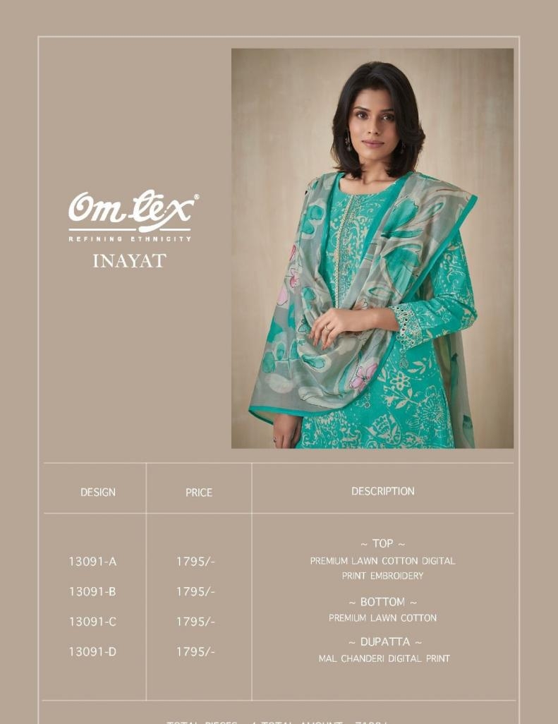 | Name: | Omtex Inayat Series 13091 Lawn Cotton Wholesale Suit |