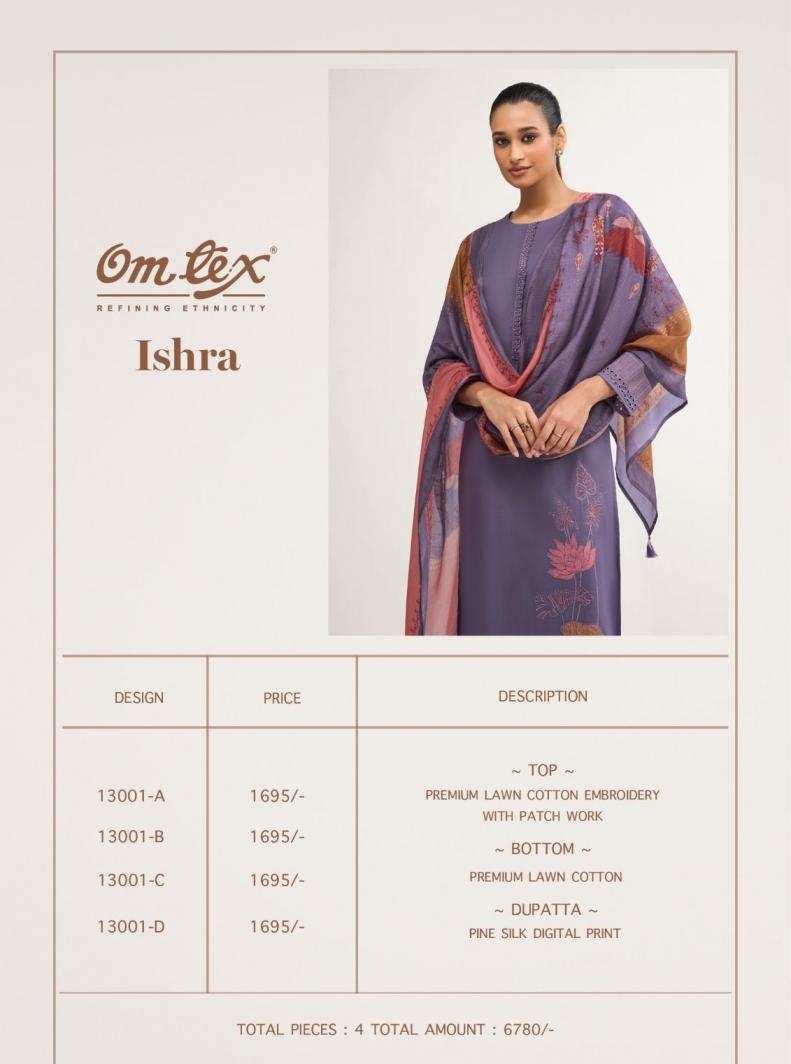 | Name: | Omtex Ishra Series 13001 Lawn Cotton Wholesale Suit In Surat | |