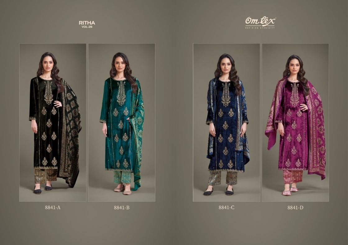 | Name: | Omtex Ritha Vol 28 Series 8841 A To 8841 D Viscose Velvet Pretty Look Readymade Big Size Suit In Wholesale Surat |