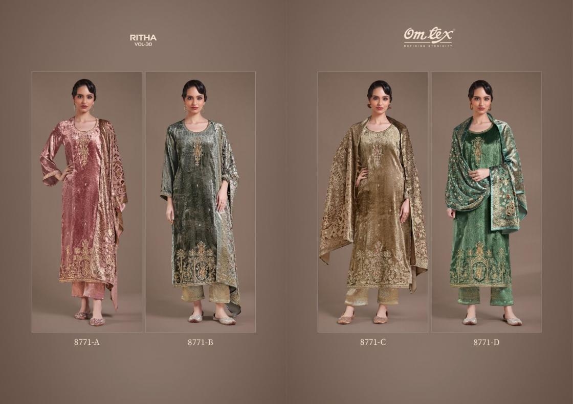 | Name: | Omtex Ritha Vol 30 Series 8771 A To 8771 D Fully Stitch Viscose Velvet Big Size Salwar Kameez In Wholesale Surat |