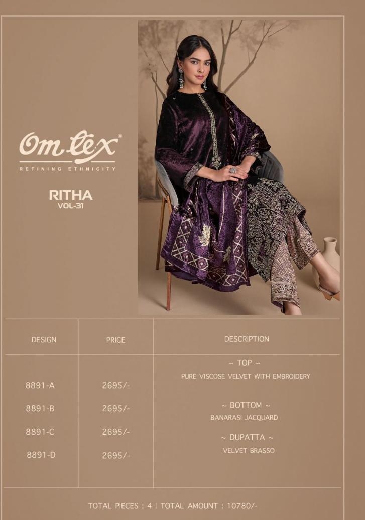 | Name: | Omtex Ritha Vol 31 Series 8891 A To 8891 D Pretty Look Viscose Velvet Winter Salwar Kameez In Wholesale Surat |