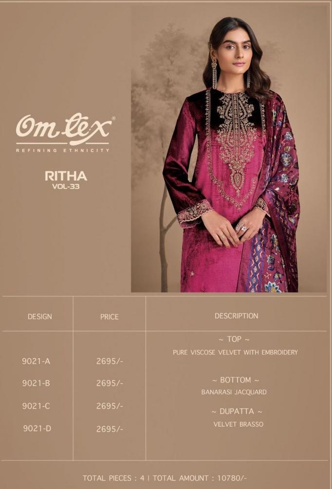 Name: | Omtex Ritha Vol 33 Series 9021a To 9021d Viscose Velvet Winter Designer Salwar Kameez In Wholesale Surat |