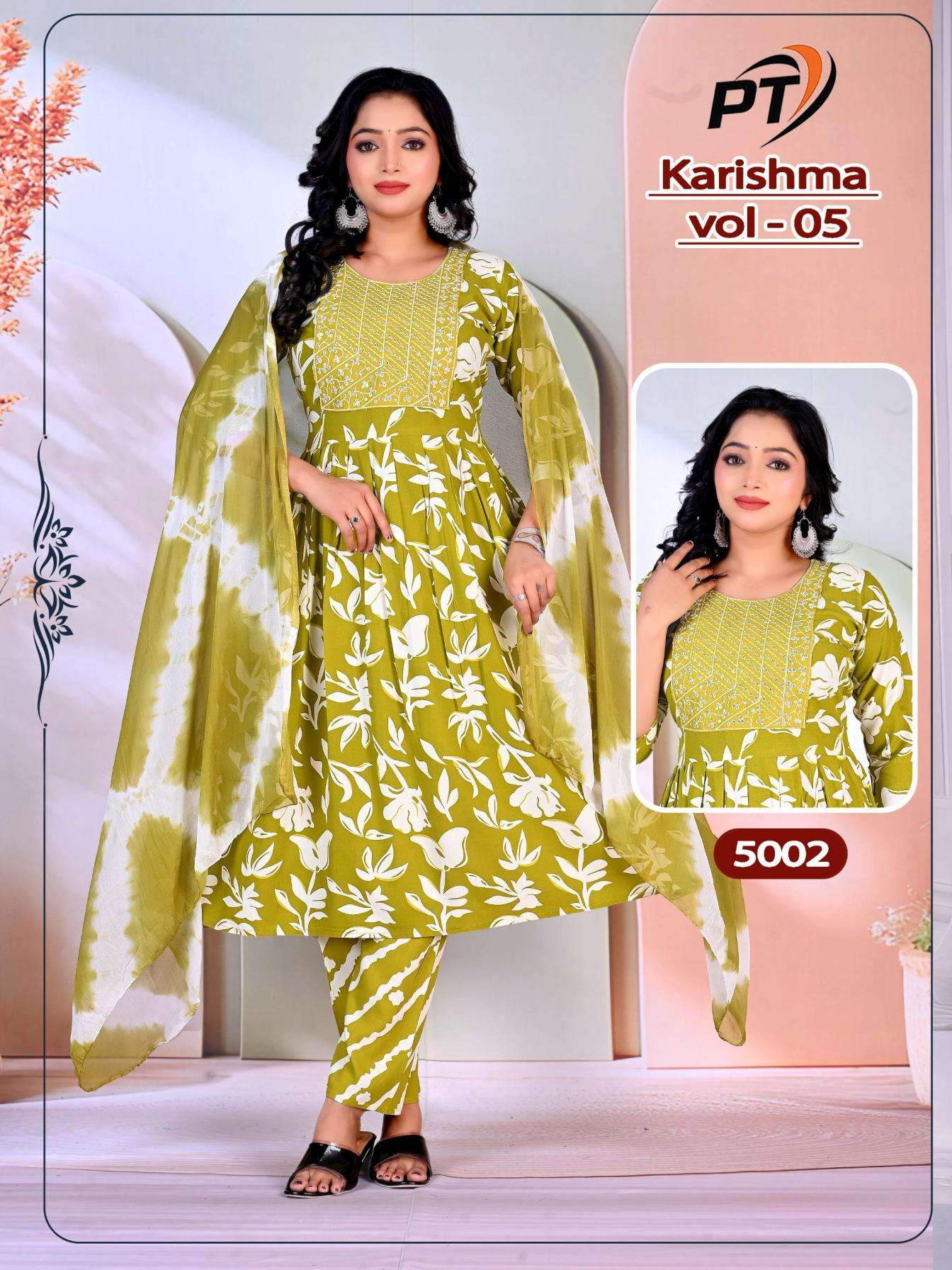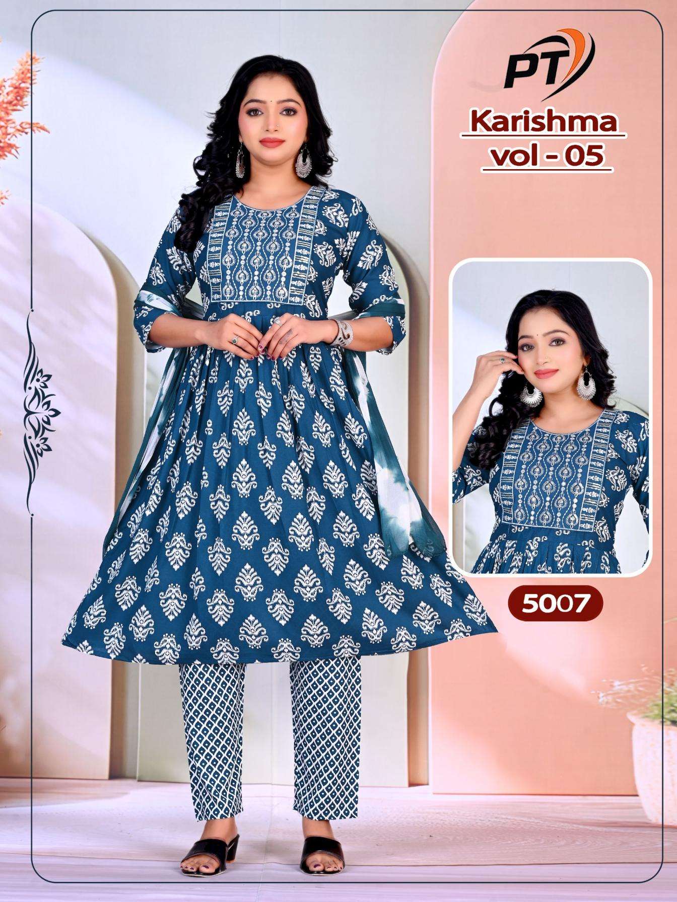 | Name: | Padmavati Karishma Vol 5 Series 5001-5008 Rayon Wholesale Readymade Suit | |