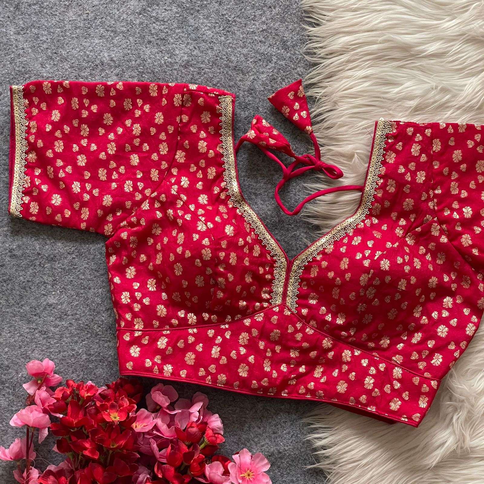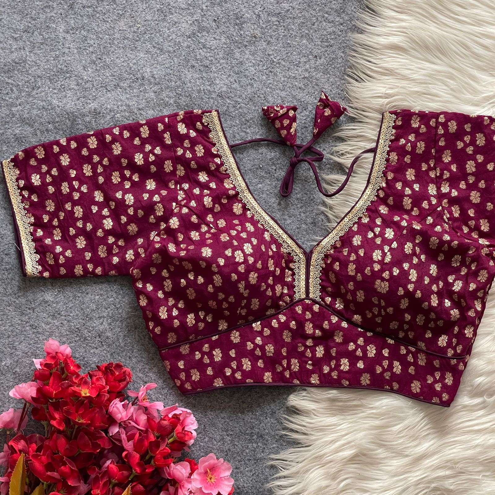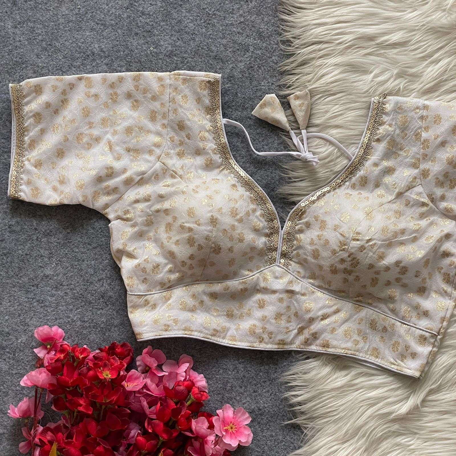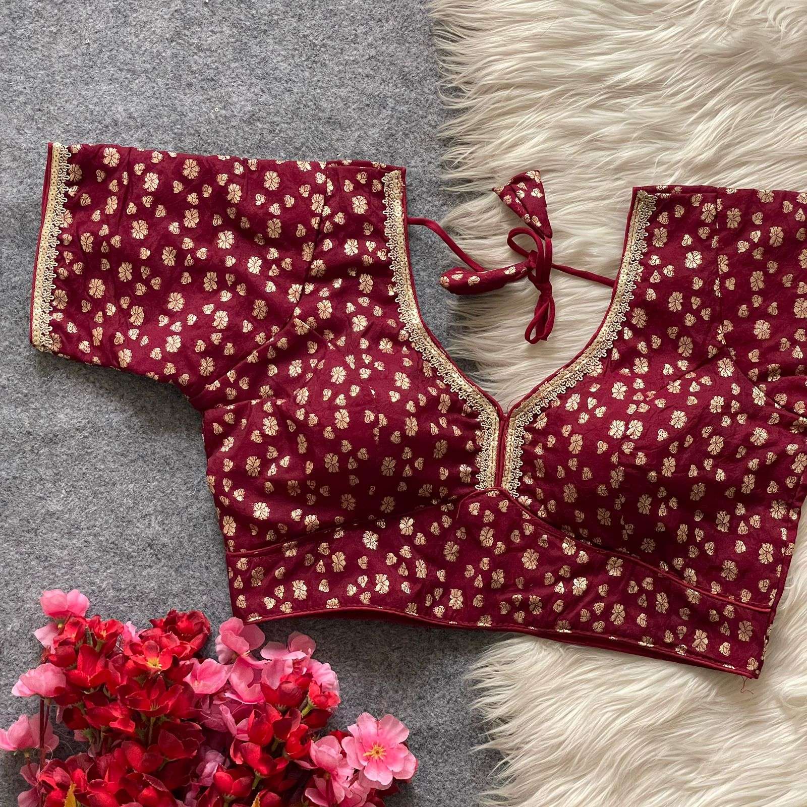 | Name: | Pinki26 Pure Dola Silk With Golden Weaving Wholesale Blouse |