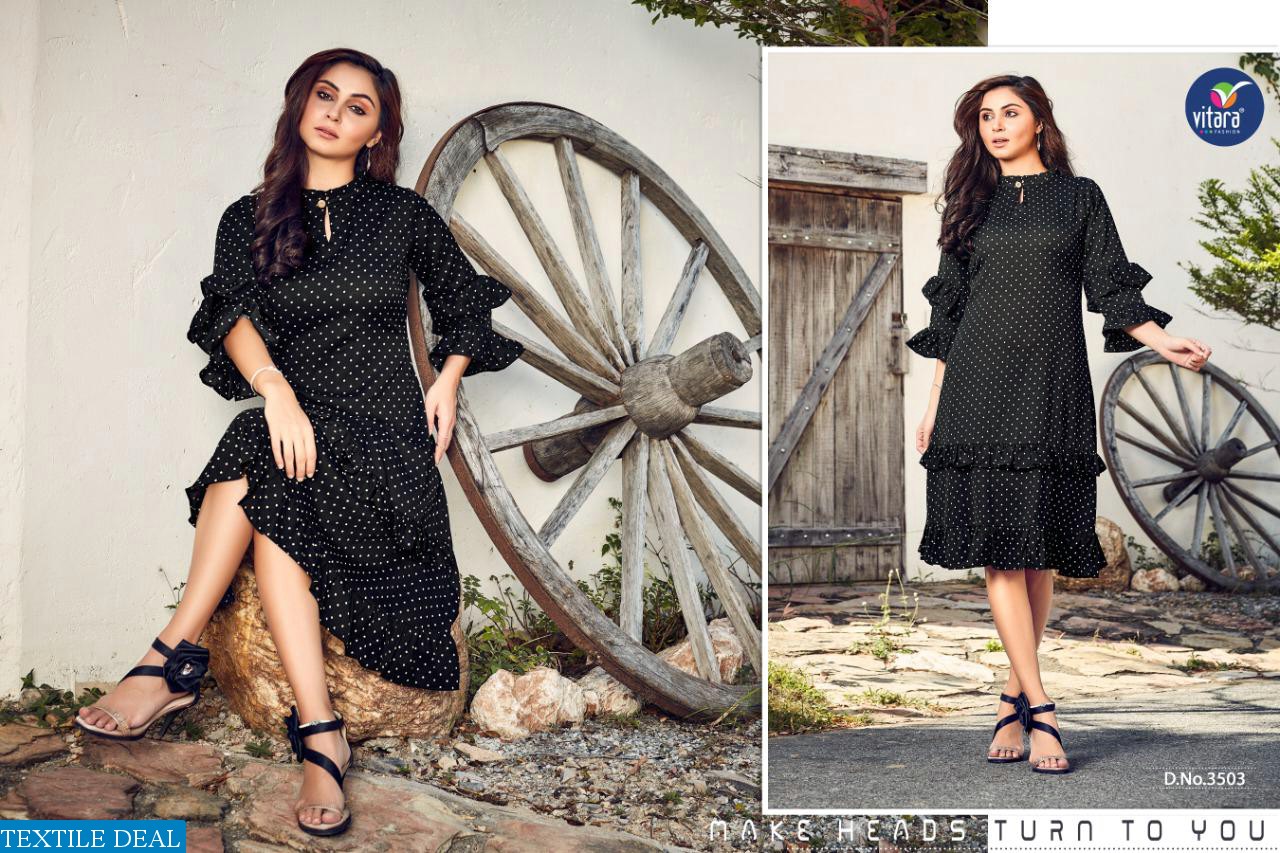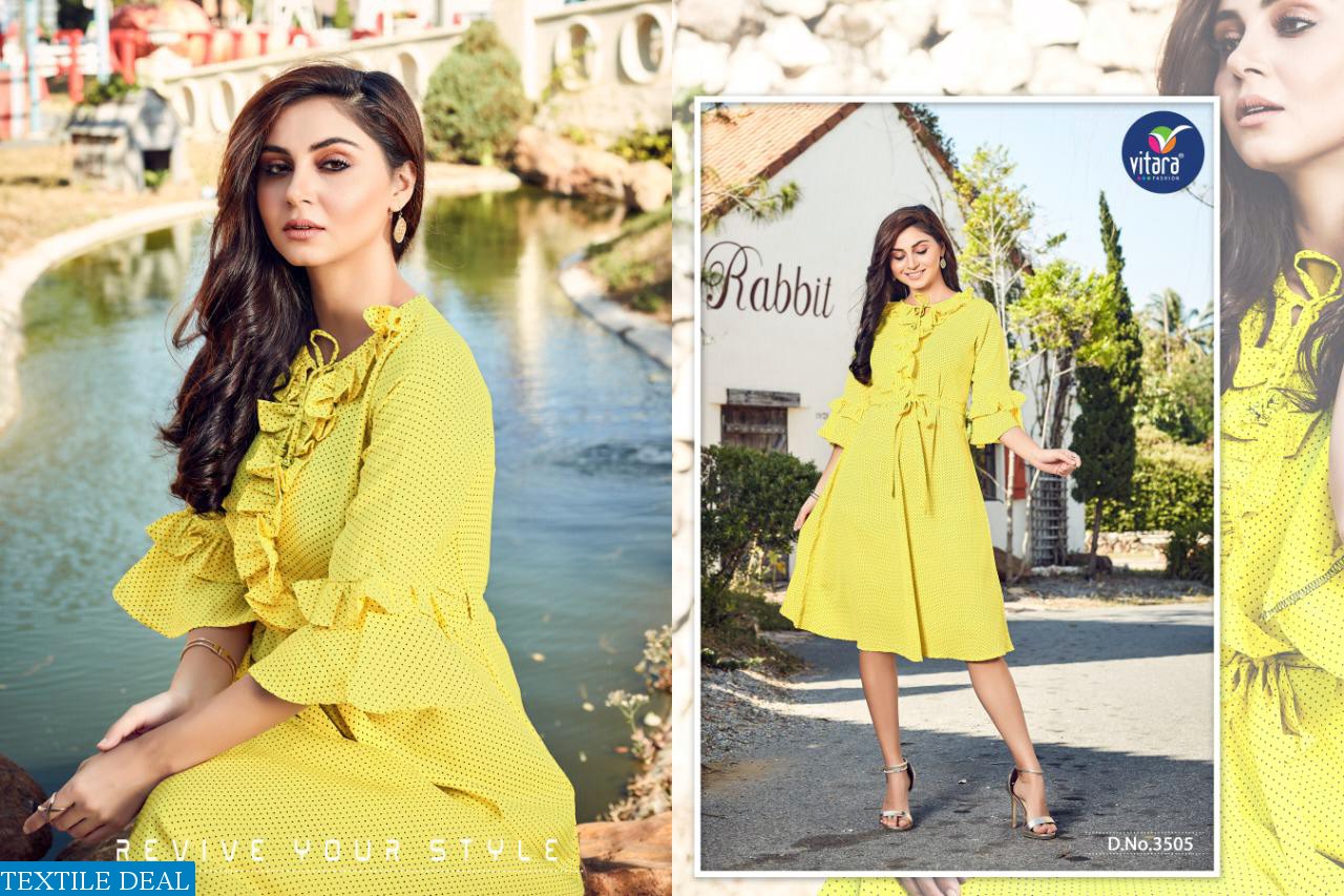 | Other Details: | vitara fashion launches exclusive designer kurti Catalogue name- PLUS POINT Fabric- moss improtant fabric Size – M -38 L-40XL-42☣Designs- 5 Rate:- 550/- GST +5% ADD ON BILL AMT |