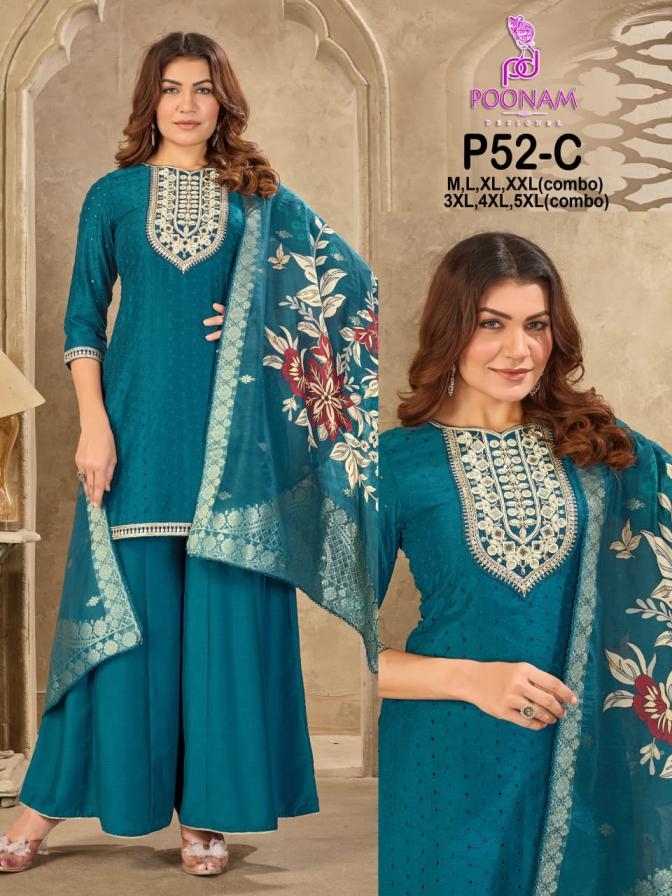 Full Description: | poonam designer p52 readymade muslin chikan combo set big size suit in wholesale surat |