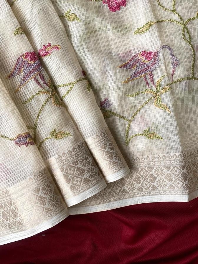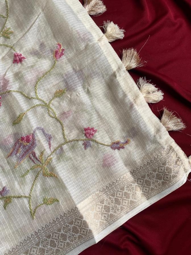 | Other Details: | 1033❤️ Pure kota sarees with beautiful Embroidory all over saree with cross stich thread and banarasi viscose border with tassels on pallu Teamed with contrast beautiful jaquard blouse as shown in pic Price :- 1400/- +gst |