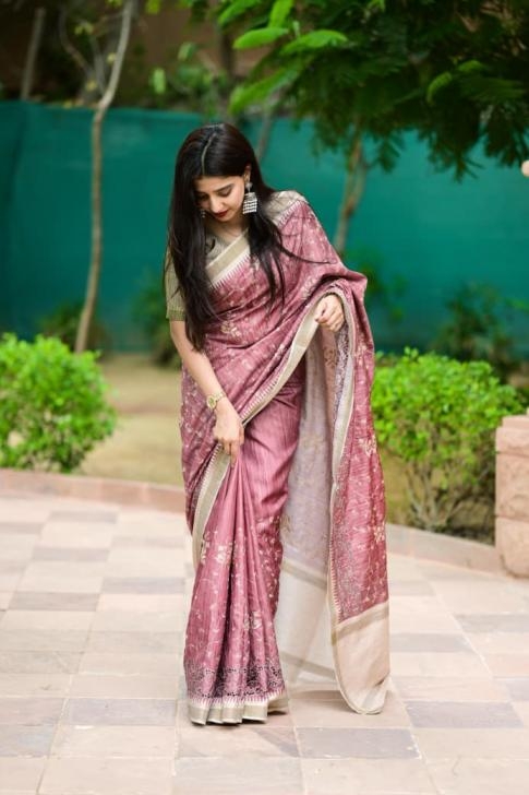 | Name: | Pr Anupama Tusser Cotton Designer Embroidery Work Saree In Wholesale Surat |