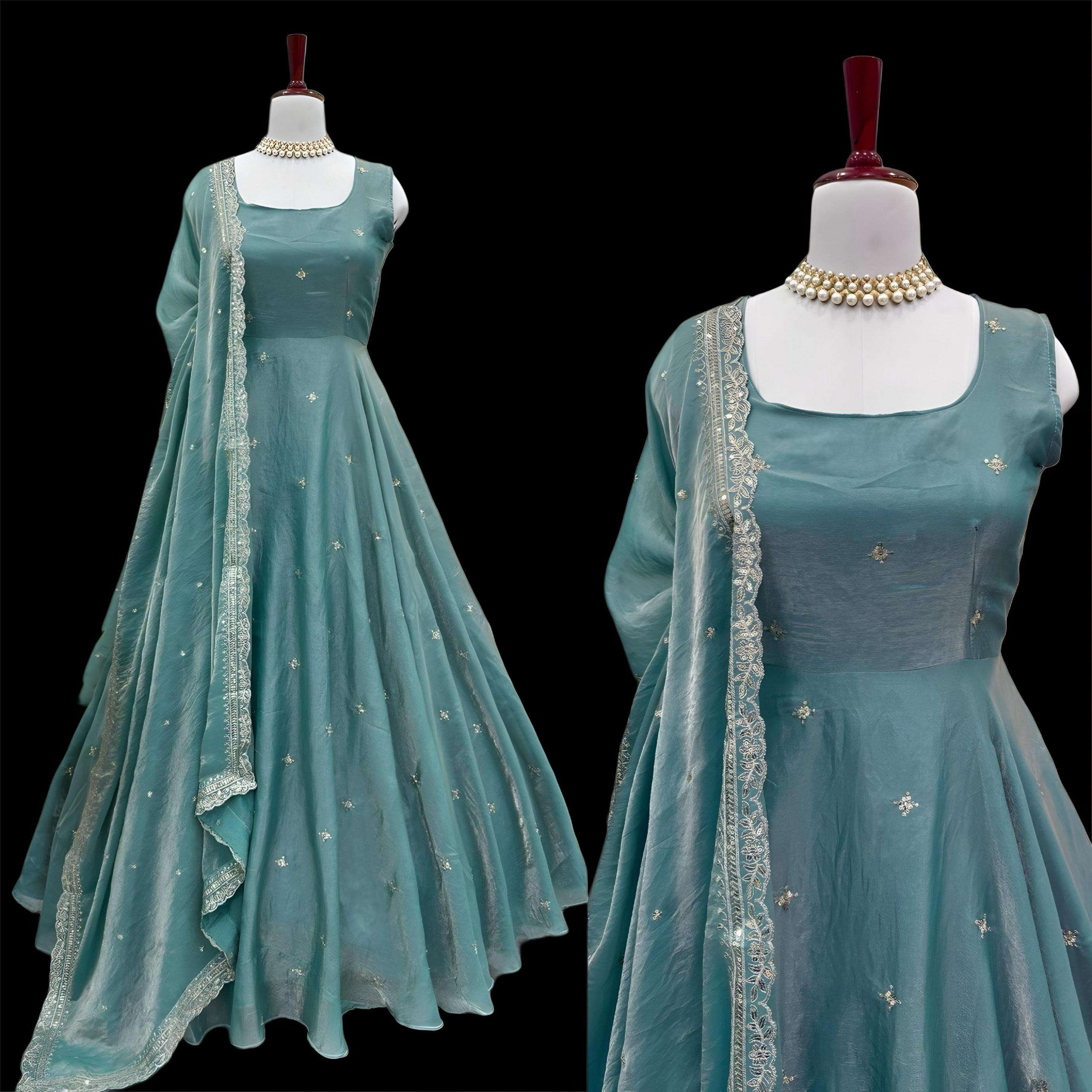Other Details: | 🌼 Gown Collection🌼 ✨ Elegance in simplicity ✨ DVD ON 5095 Gown (Stitched) Gown flair: 4Mtr Duppta Bottom (Full stitch) Weight : 650gms Price : 1195₹ |