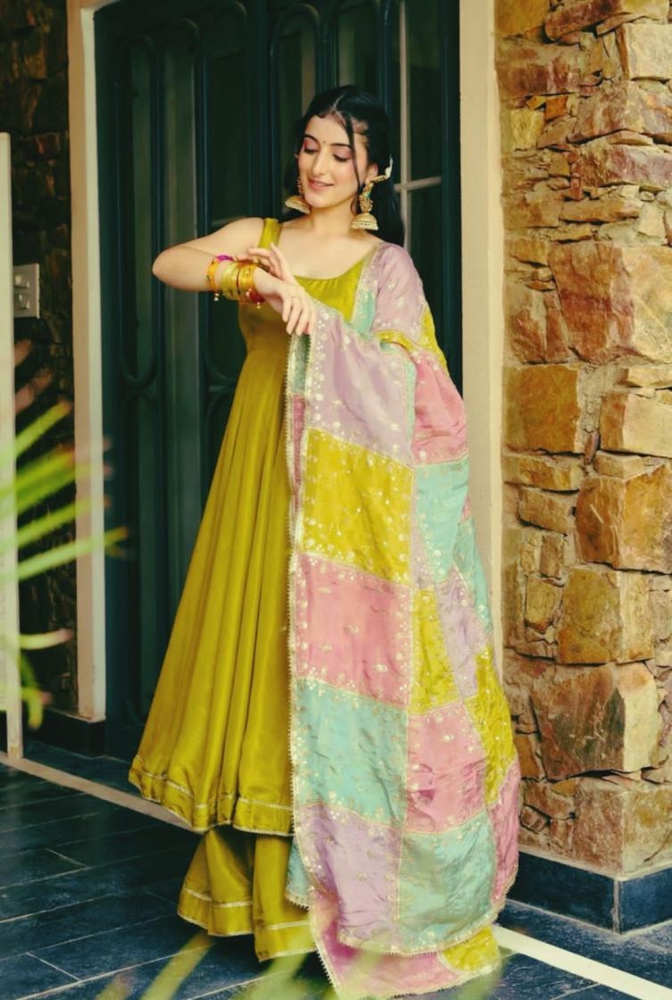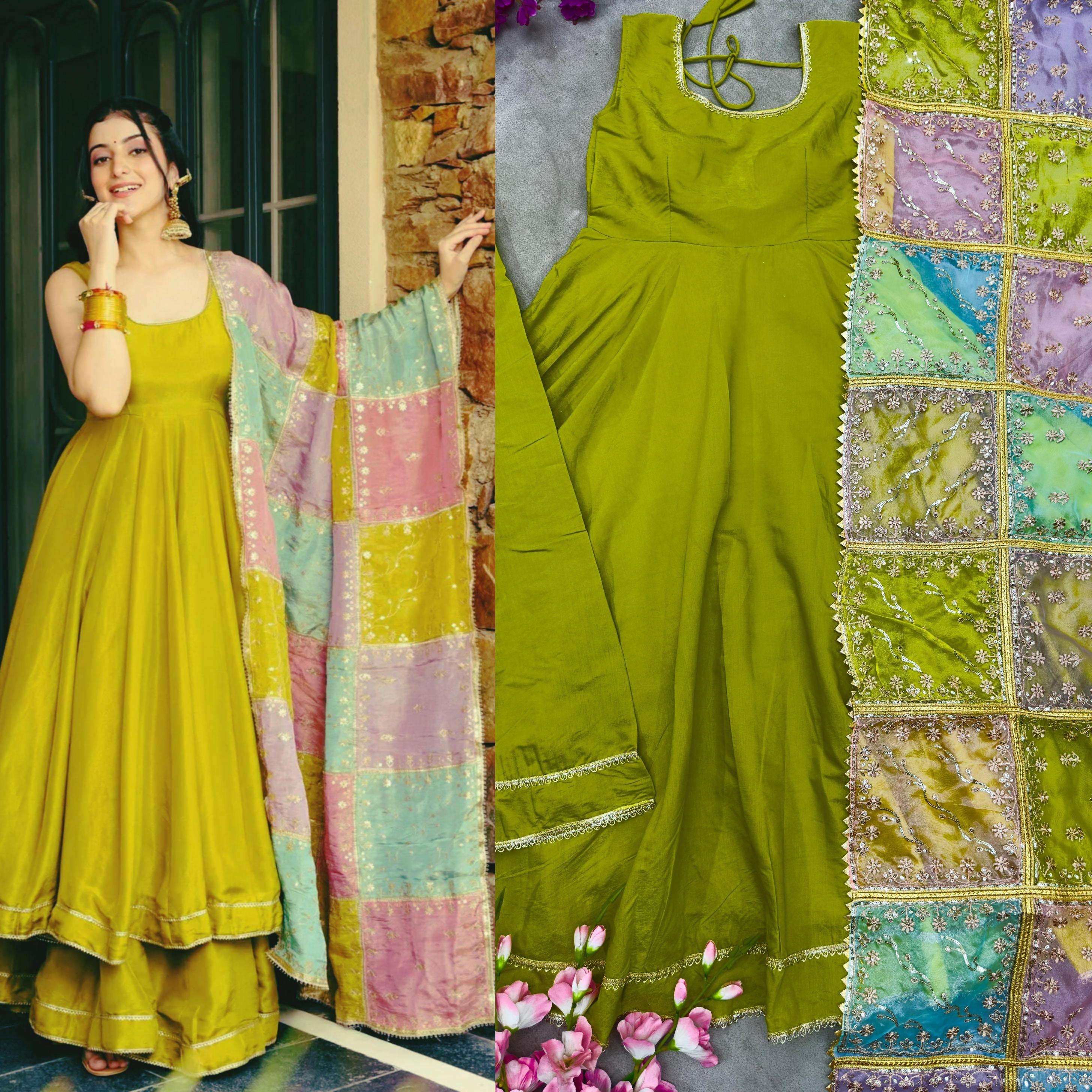 | Other Details: | “Elegance meets tradition — Mehndi colour paired with a beautifully embroidered multi-tone dupatta, perfect for festive celebrations or a graceful evening affair.” DN: DVD ON 5137 👗TOP (Note: SLEEVE FABRIC GIVE IN SAPARATE) 👖Plazo Fabric :- ROMAN SIMMER SILK GOTA LACE BORDER 👗Dupata Fabric : ORGENZA SILK Length : 2.40MTR Weight :- 1KG,100GMS Price:- 1495/- ❤️PREMIUM AND SHOWROOM COLLECTION |