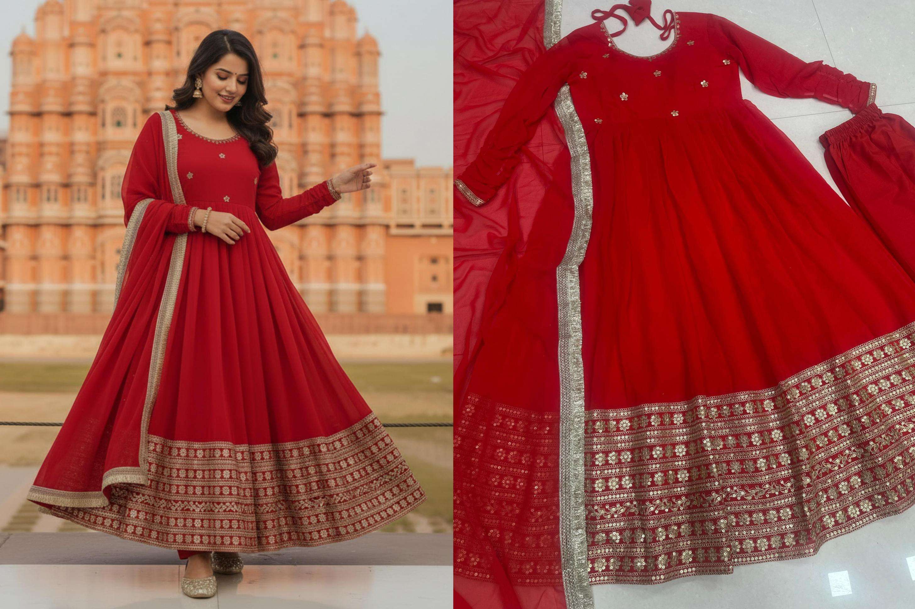 | Other Details: | 🌼 Gown Collection🌼 ✨ Elegance in Red ✨ DVD ON 5149 Gown (Stitched) Gown flair: 3 Meter Duppta Bottom (Full stitch) Weight :1Kg Price : 1295 ₹ |