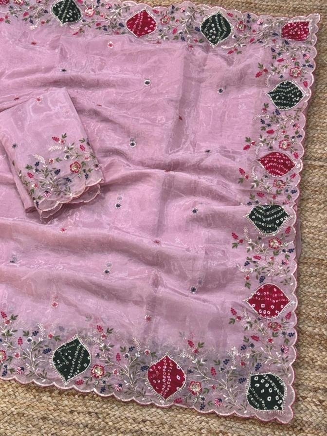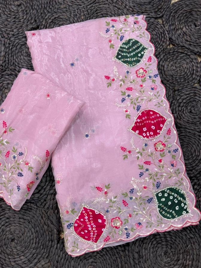 | Other Details: | Design-Ghoomar Pastel perfection meets royal elegance This pure crystal tissue saree, adorned with intricate zari embroidered with hand applique work, is a dreamy blend of grace, luxury, and timeless charm Product details Fabric- Size- Pattern-