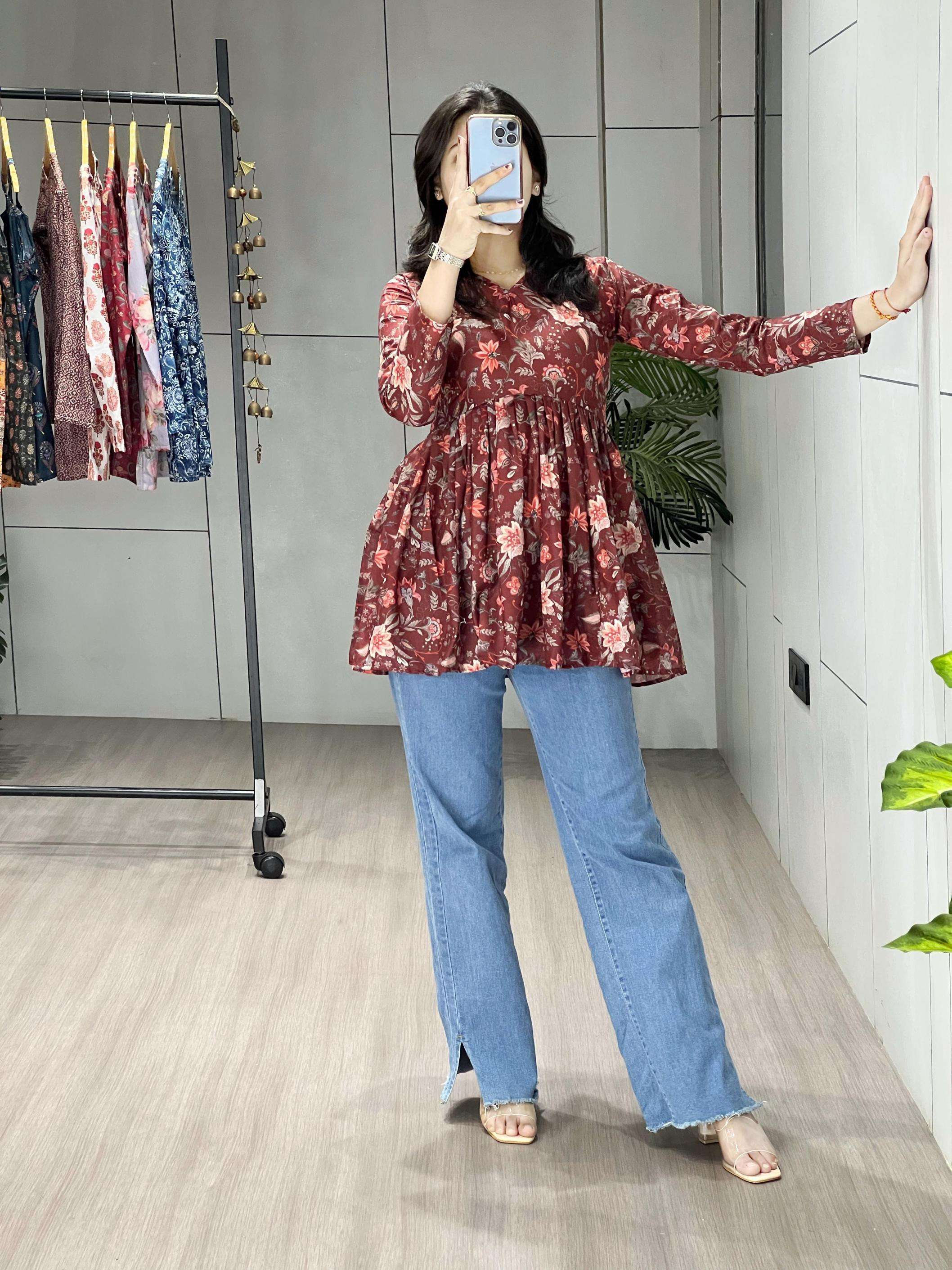 | Name: | Pr Grtn5003 Readymade Stylish Cambric Cotton Floral Printed Short Kurti In Wholesale Surat |