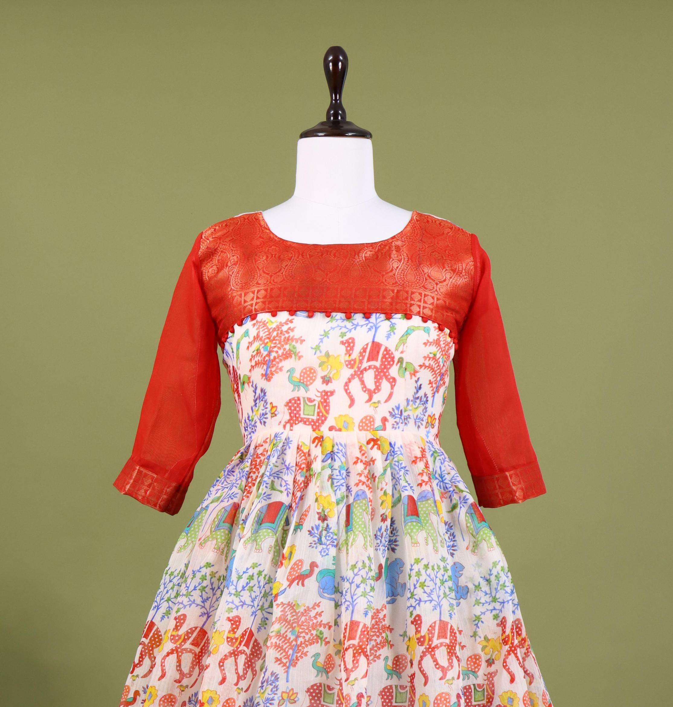 | Other Details: | Most Trendy Kalamkari Gowns👜 😍Shop the most gorgeous Indian Kalamkari Gowns.✨ Unique Colors and Patterns Free Size Adjustable Gowns👌🏻 GRTN6006WHTRED Gown Details Size