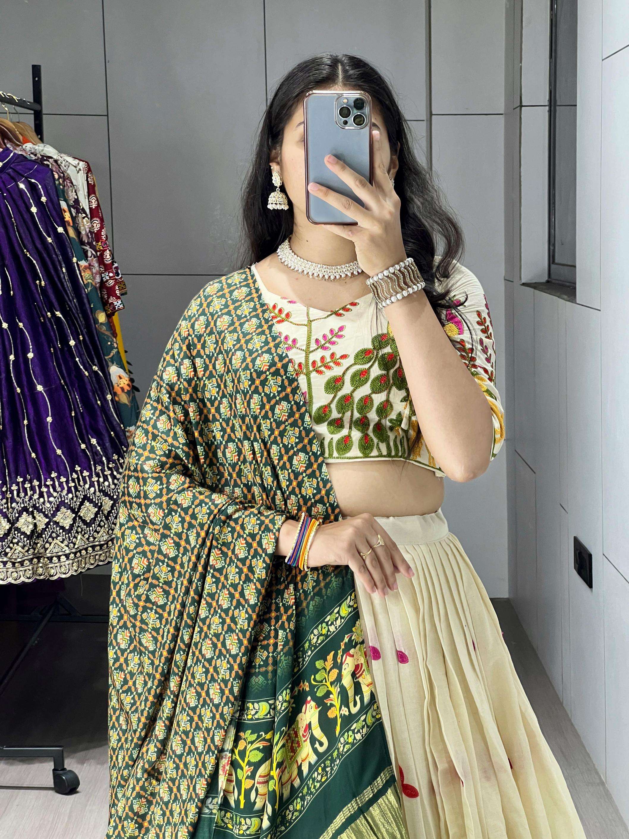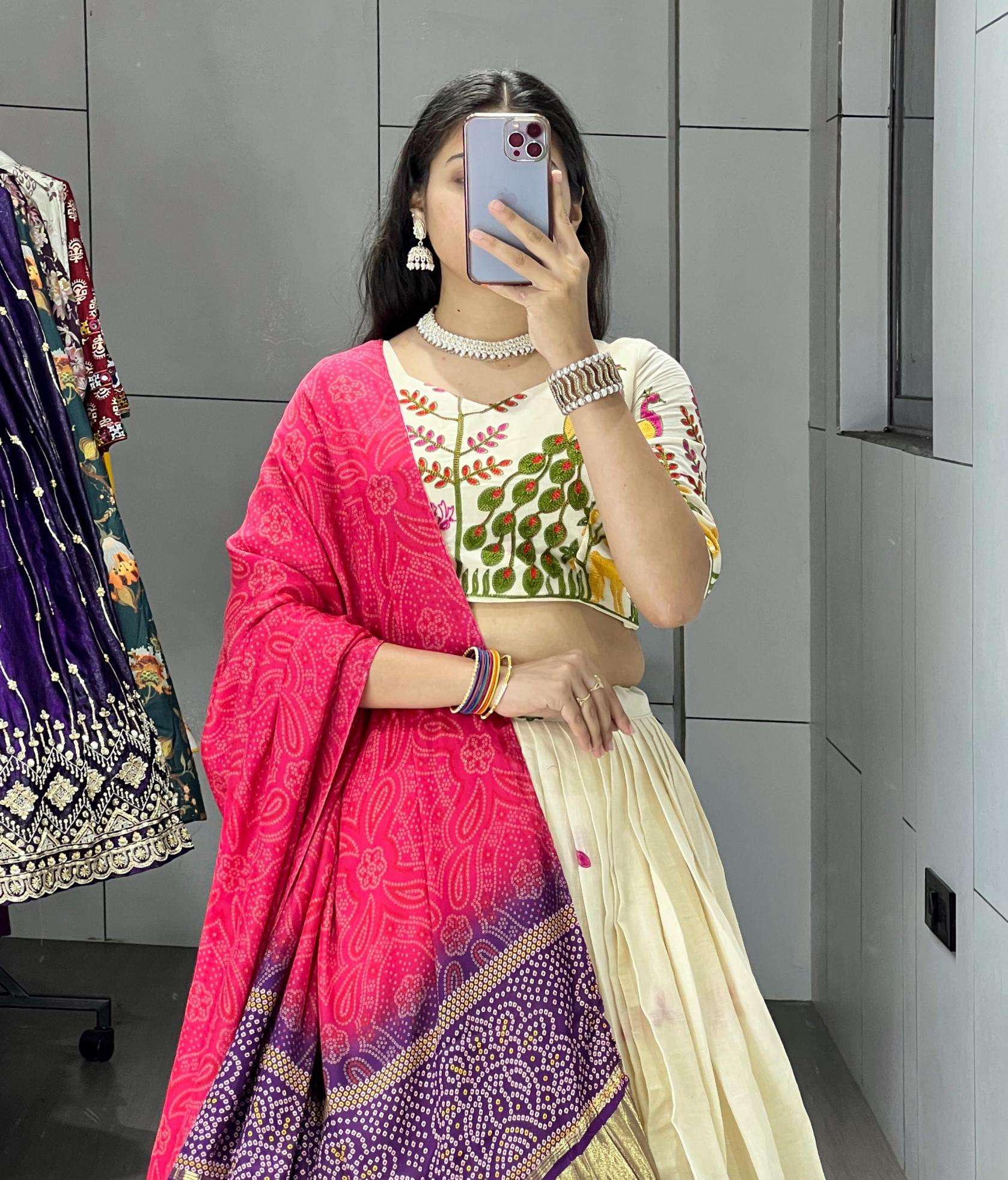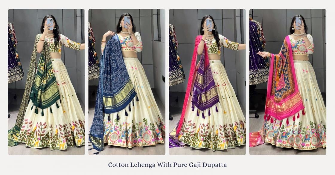 | Other Details: | Fully Stitched Cotton Embroidery Work Lehenga👜 ✨ 🥰Pure Grace: Crafted in pure cotton with delicate embroidery, a must-have for traditional occasions,Intricate embroidery enhances the natural texture of pure cotton, creating a graceful ethnic statement. ✨👜 GRTN8211RANI Lehenga(Stitched) Blouse(Fully Stitched) Dupatta Package Contain: Lehenga (Fully Stitched), Blouse( Fully Stitched) , Gaji Dupatta, Drawstring with Zip, Tassels