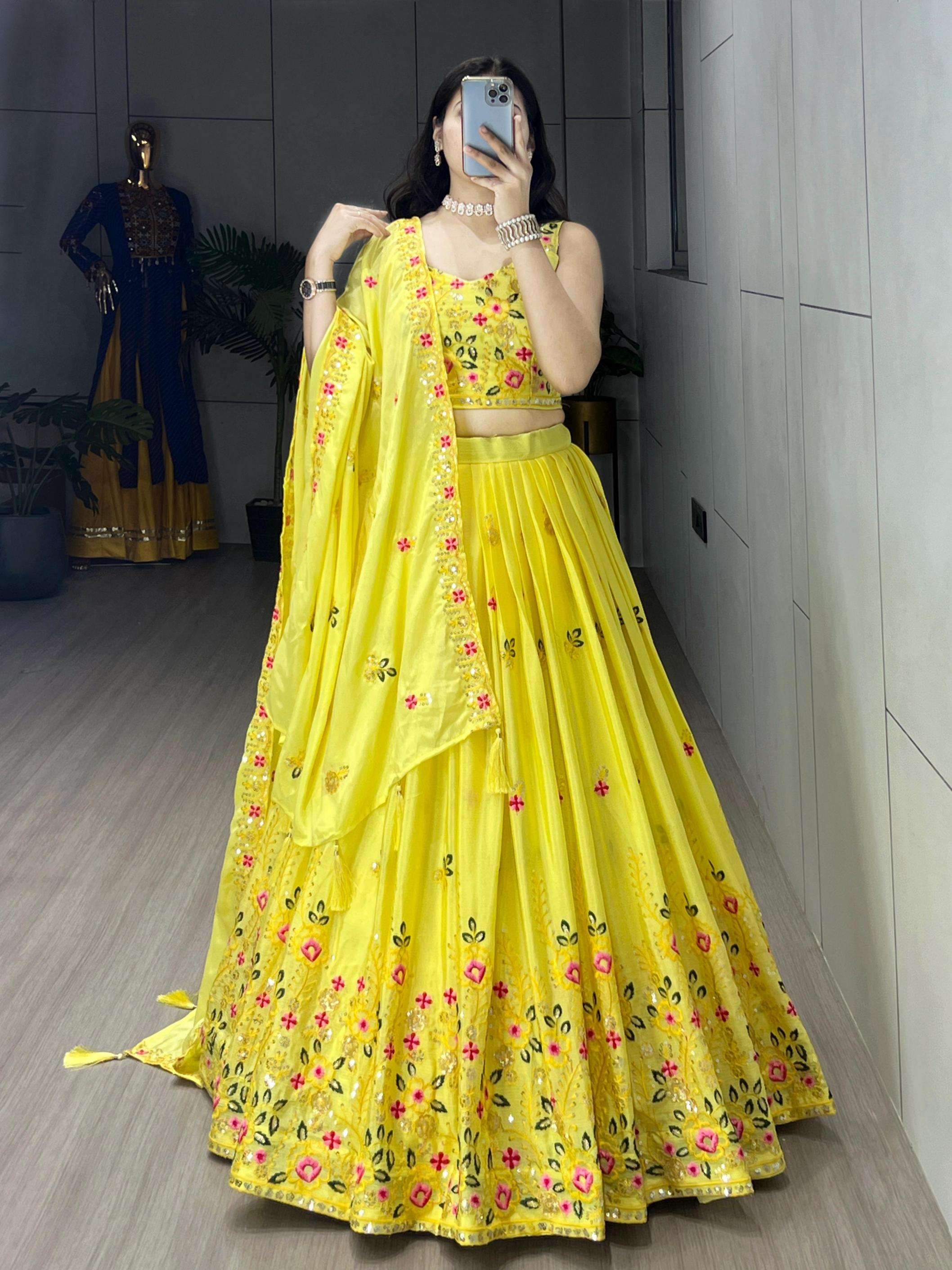 | Name: | Pr Grtn9034 Chinon Designer Yellow Embroidered Stitch Lehenga Unstitch Choli In Wholesale Surat |