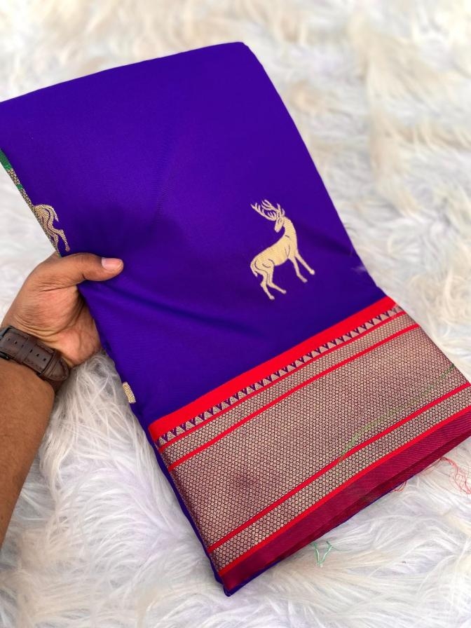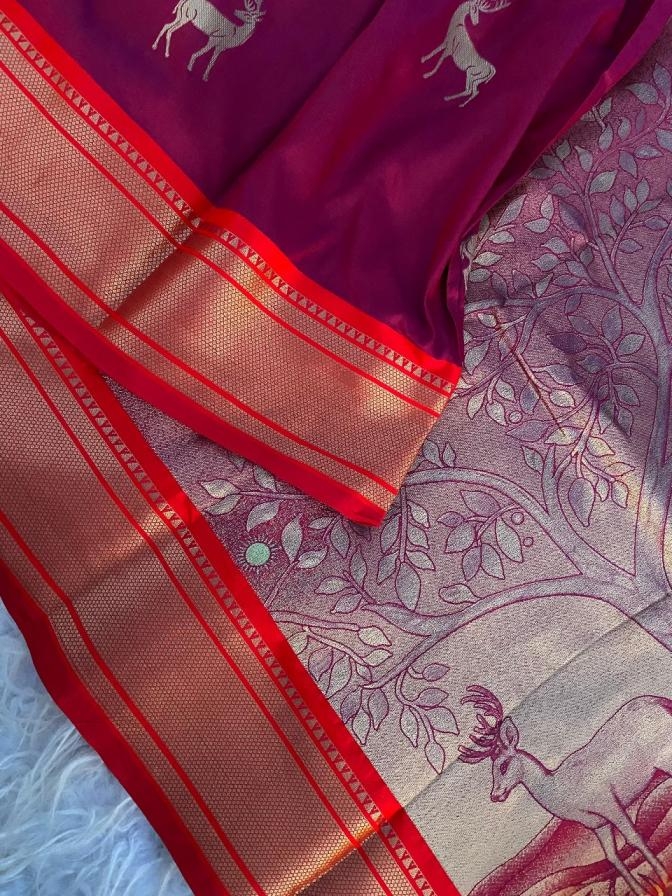 | Other Details: | FRESH ARRIVAL❤️ Catalog : Hiran A deer or true deer is a hoofed ruminant ungulate of the family Crevice. By Adding This Deer Motifs Concept In the Saree Design, We are Pleased With Enhancing The Beauty Of The Saree. Teamed With Running Blouse With Weaving Deer Motif On Blouse Enancing Stunning Look Of The Blouse From The Back Side. Price :- 850/- +gst |