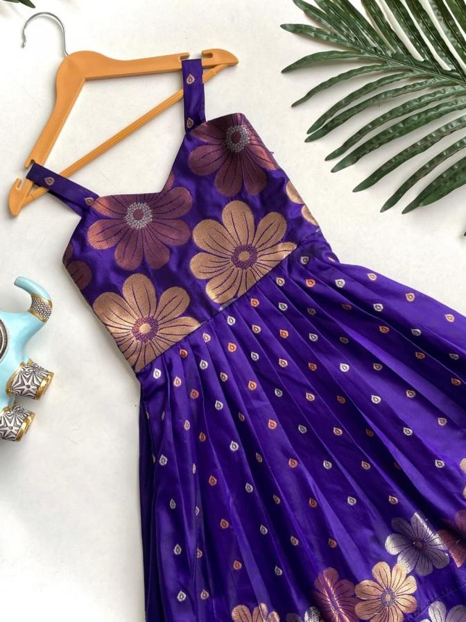 Other Details: | 🌺New catalog 🌺 Catalog: K Siya A charming girls dress with intricate floral weaving and a stylish panel design,perfect for every occasion, from playdates to parties. Available in 5 beautiful colors 🌸 Fabric :- Soft silk