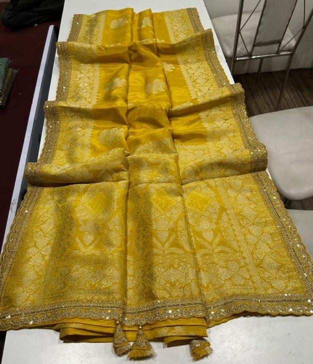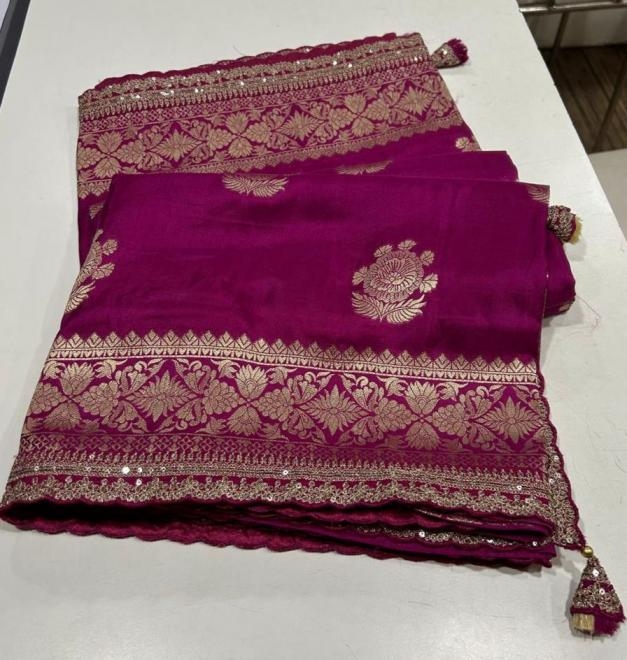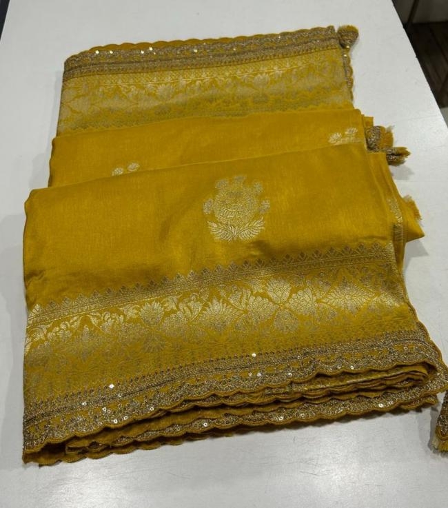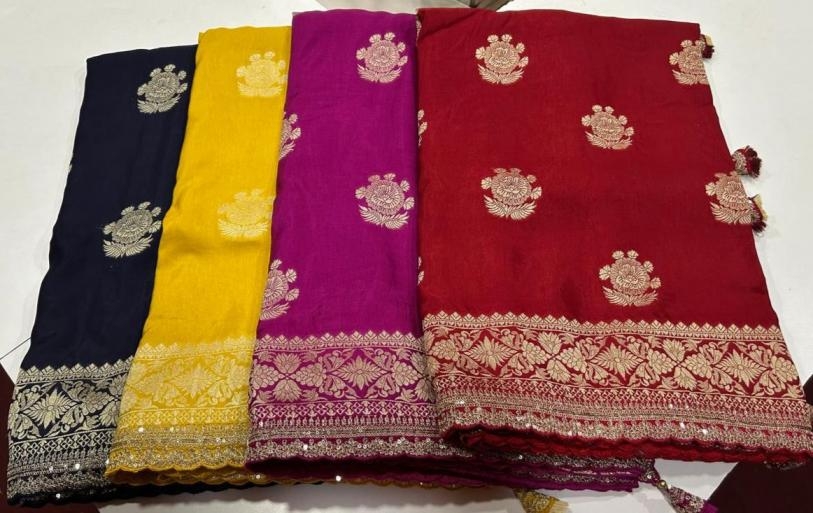 Other Details: | "Elegant charm! Our Russian cotton silk weaving saree features: KC-341 Rich jari elegant weaving pallu with scalloped embroidery work border, adding sophistication Perfect for special occasions, this stunning saree blends elegance and tradition, making it a timeless choice." Price ₹1499/- +GST |