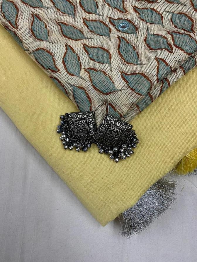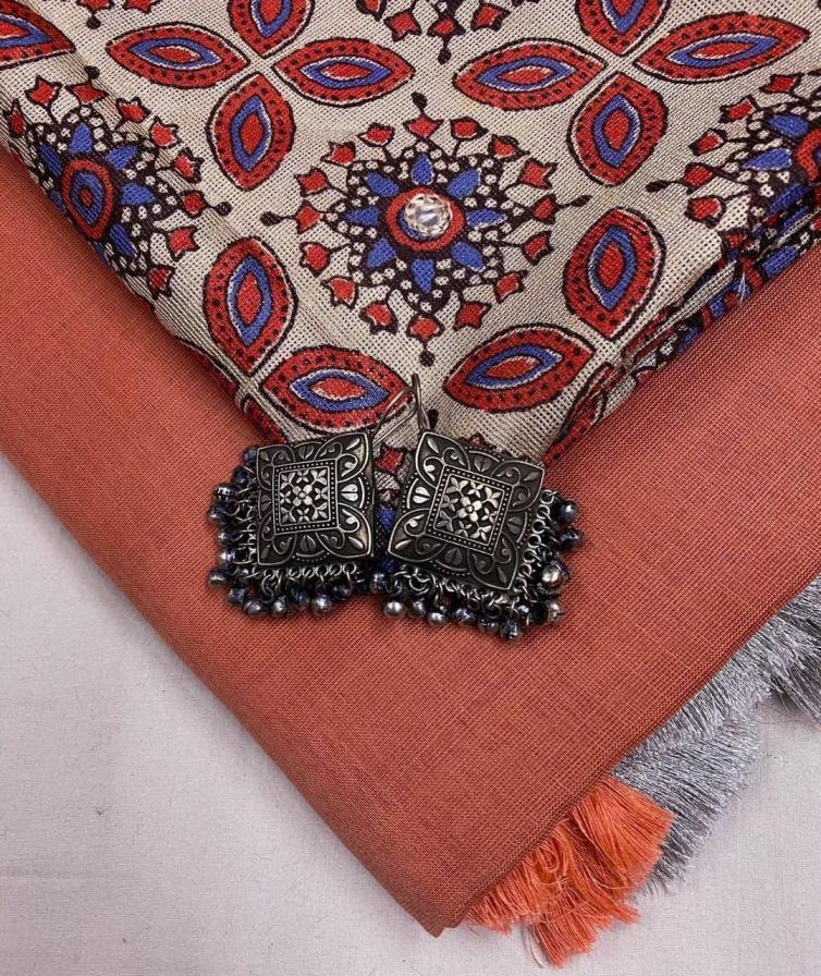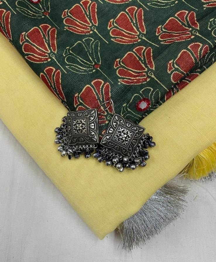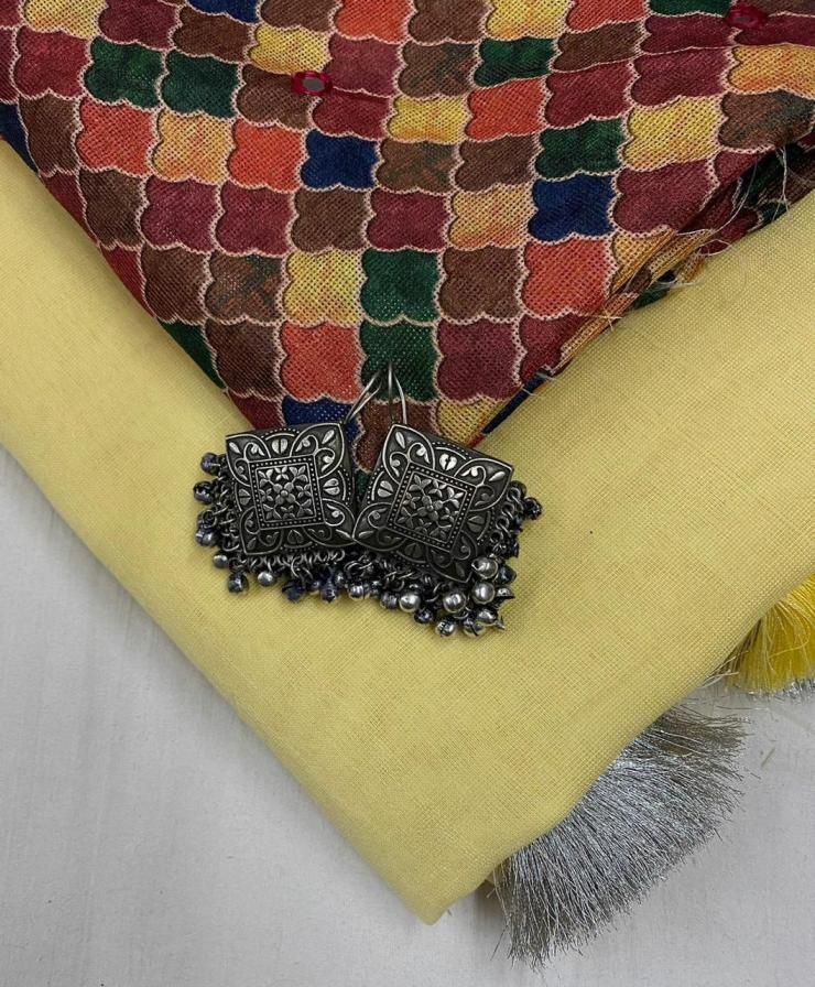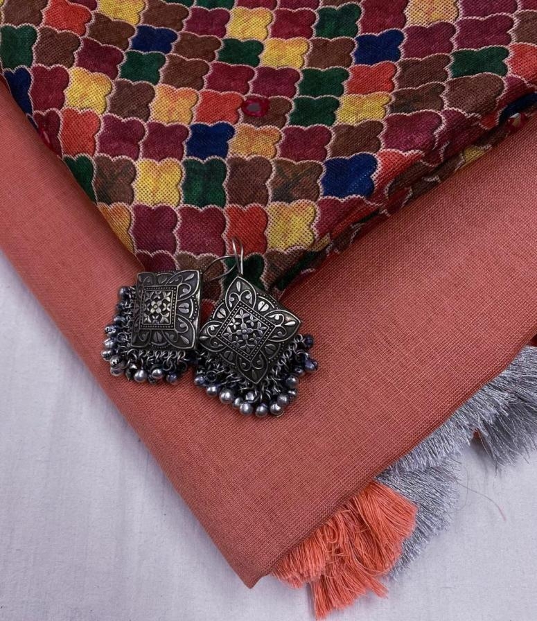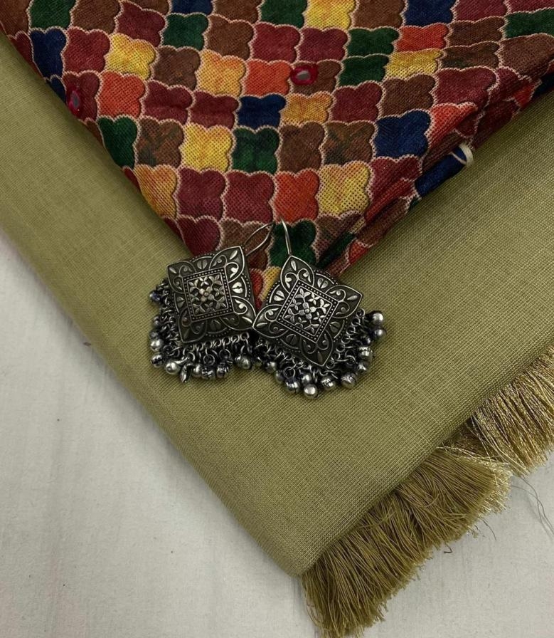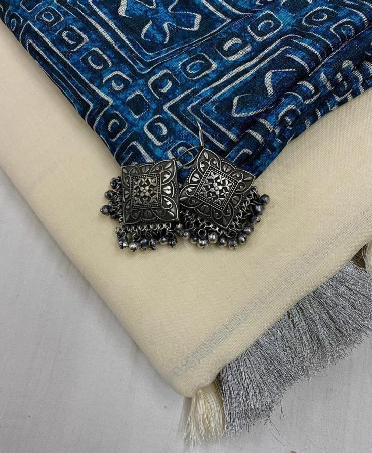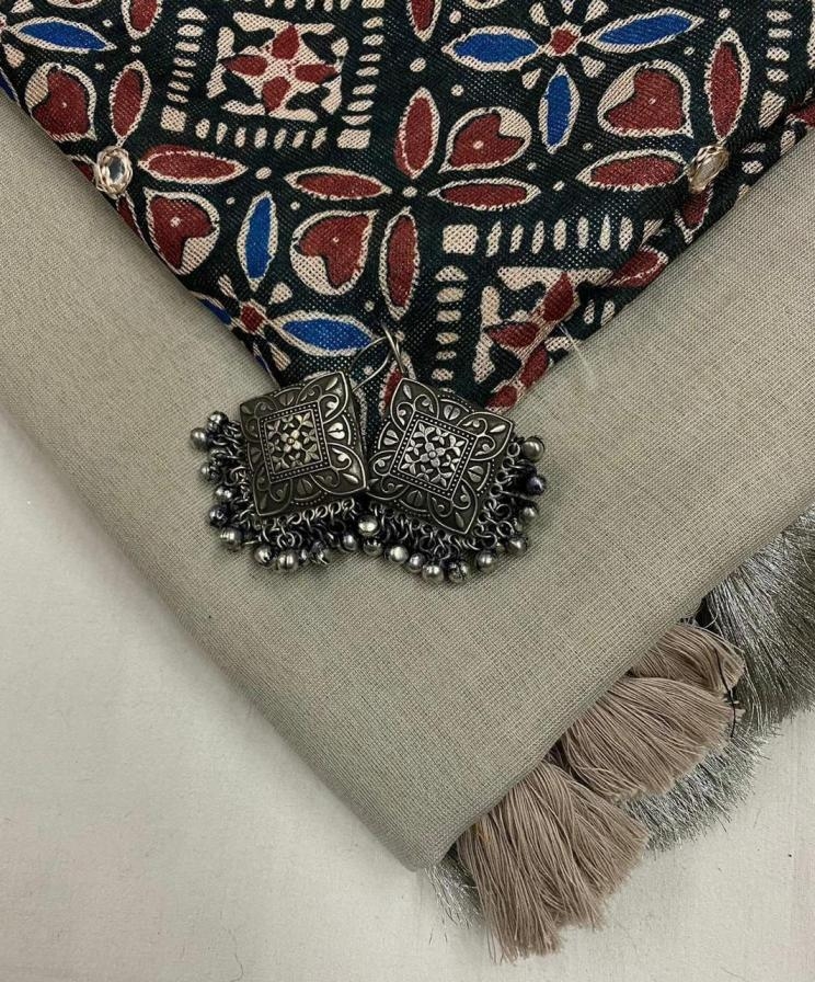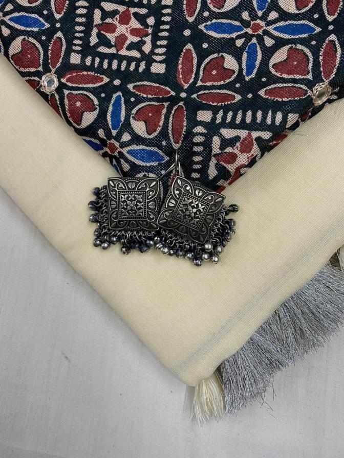 | Other Details: | Top coustmer staisfaction KC - silver linen (single color edition) Quality- grey colored linen saree with silver zari weaving pattu border. Cotton tasselson pallu. Blouse- beautifull bhandani style printed jute silk with hand aari mirror work. Free - perfectly matched oxidised jumkas (super high quality). Saree- 5.5 meters Top trusted quality |