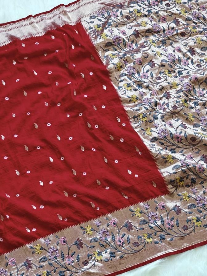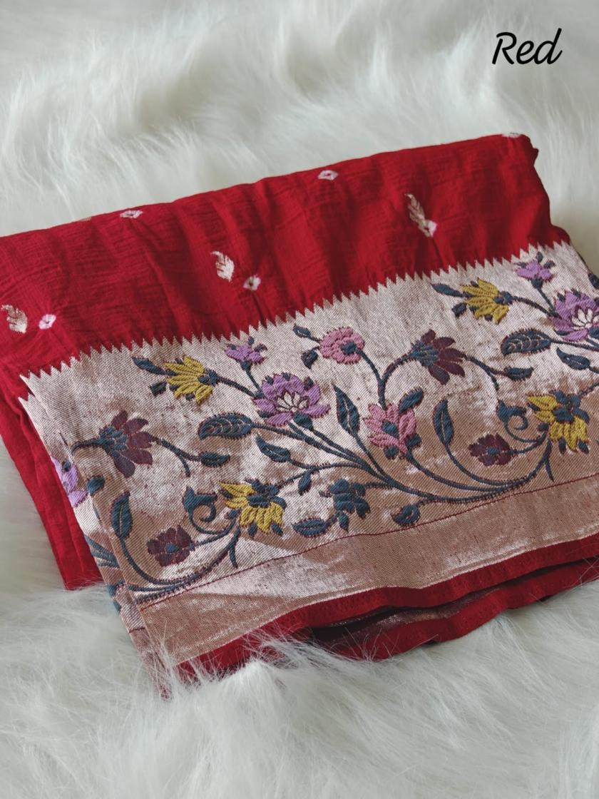 | Other Details: | PURE & PREMIUM RANGE. Catalog : Murnal PURE VISCOSE RAW SILK SAREE WITH ALL OVER BANDHEJ PRINTS & PAITHANI WEAVES, 3 PLY ZARI WOVEN PALLU AND ZARI WOVEN DESIGN WITH ZARI BORDER. AVAILABLE READY STOCK. |