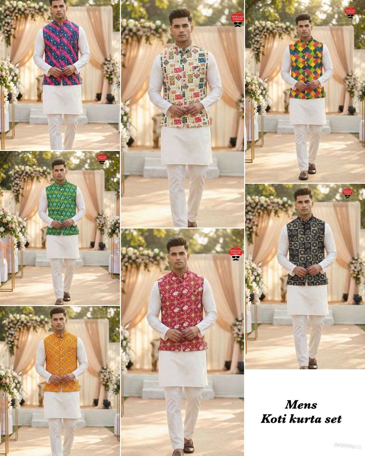| Other Details: | Raj Tilak Ready to Wear Kurta Koti Pyjama set Fabric: Pant: Malai satin Size: Price: 999/- Best Quality Item @ Best Rate |
