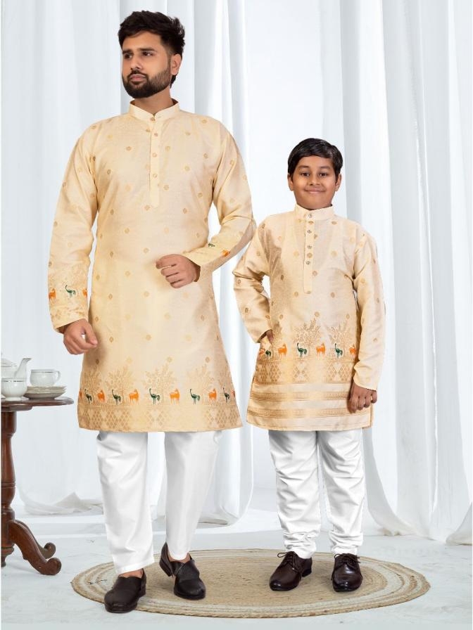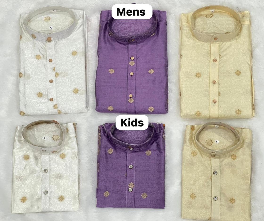| Other Details: | Rajwada👑 Premium Silk with jequard imprints in trending Daman design Fabric: Silk with jequard design Pyjama : Cotton Size: -Adult- -Kids- Rate: Best quality Product in Best pattern |
