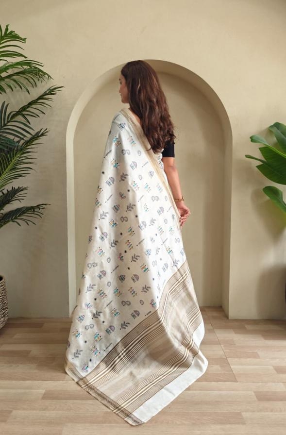 Other Details: | New Catalogue 😍 PURE & PREMIUM RANGE. CATALOGUE - SAHELI 👉🏻 DESCRIPTION : PURE LOOM TUSSAR SAREE WITH ALL OVER WORLI EMBROIDERY PATTERN, COPPER ZARI BORDER AND ZARI WOVEN PALLU. PRICED AT 1450/- +GST READY STOCK. |