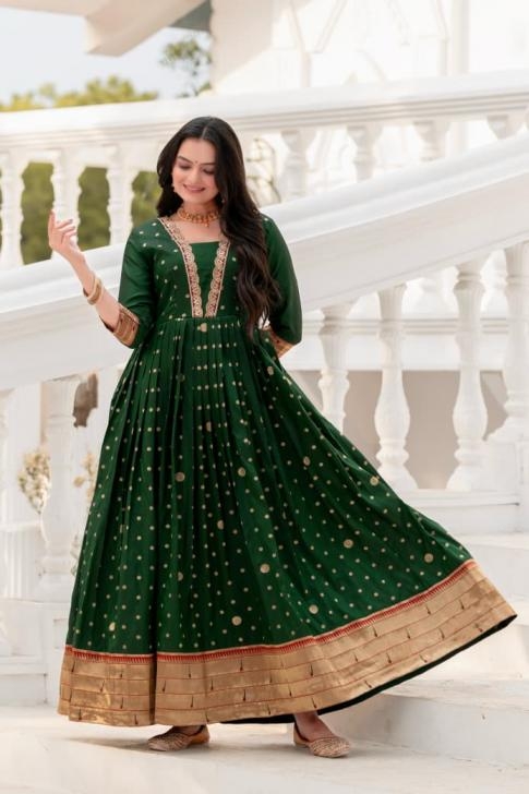 | Other Details: | 🌸New Catalog🌸 Catalog : W2087 Elegant bottle green Polka Paithani gown featuring a beautifully crafted front neckline and vibrant parrot motifs on the back. With elbow-length sleeves and a flared silhouette, it blends tradition and grace perfectly💕 Gown fabric:- Soft silk Size available :- S,M,L,XL,2XL,3xl,4xl Price- 1800/- Note :- Size customization is available as per requirements. SIZE CHART:- Size S :- Size M :- Size L :- Size XL :- Size XXl:- Size 3xl :- ……………… Size 4xl :- |