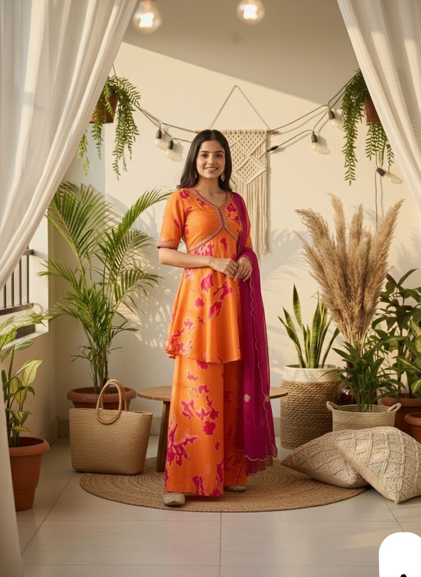 | Name: | Premium Printed French Crepe Top With Plazo And Dupatta |