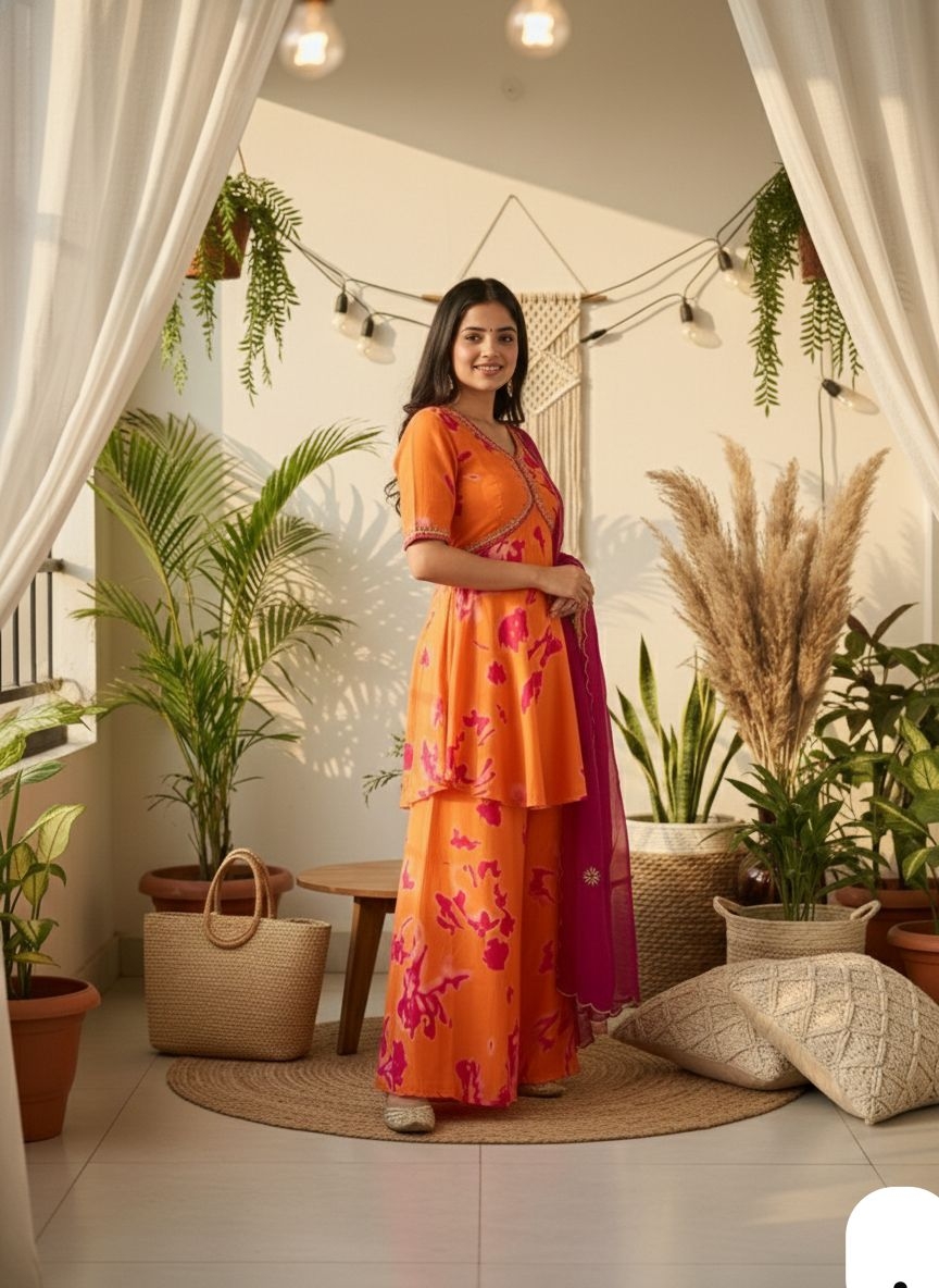 | Other Details: | 💫 PREMIUM PRINTED TOP with plazo and dupatta👗 🧵 FABRIC: French crepe 🎨 WORK: PRINT with embroidery 📏 SIZES: M (38), L (40), XL (42), XXL (44) 3xl(46) 📐 LENGTH: 34 Plazo length: 40 Weight:- 450 Dupatta fabric: orgenza with work NECK TYPE: stylish embroid NECK 💰 BEST RATE: ₹799/- 🚚 READY STOCK | ✨ PREMIUM FINISHING |