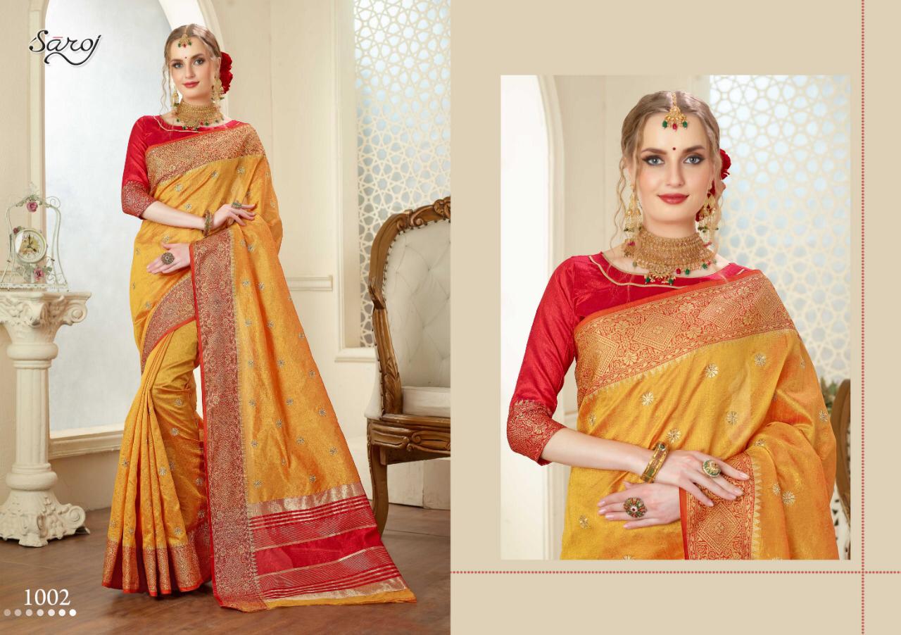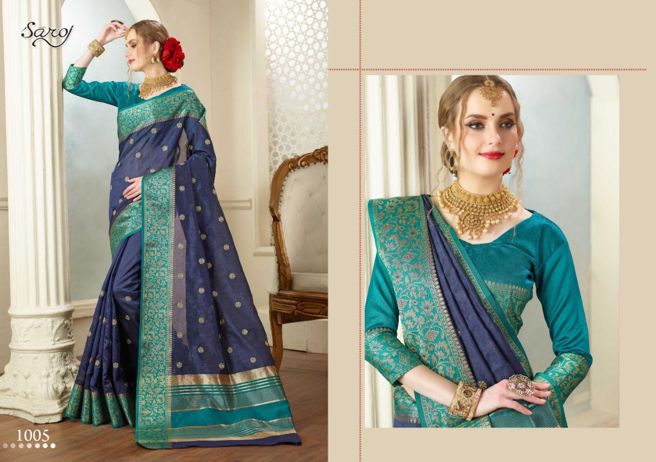 | Other Details: | *Rajjo by Saroj * Rate – 940 per Pcs . Set to set. GST 5 Percent Extra Fabric: weaving silk with viscoss border. Blouse: Silk cotton. 8 Designs in set . Set to set. GST 5 Percent Extra Delivery 3-4 days |