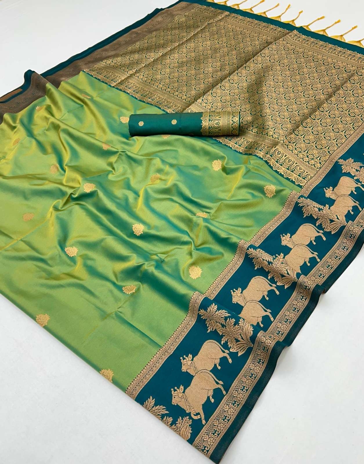 Other Details: | Brand : Rajtex Catalog Name : Pure Silk Pichwai Series : 001 TO 006 Saree: Pure Handloom Weaving Blouse : Pure Handloom Weaving Price :- 1360/- 5% Gst Occasion : Festival wear,Party Wear |