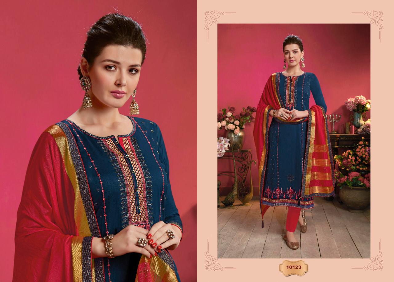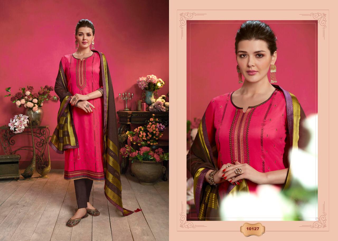 Other Details: | ? Ramaiya (Kessi Fabrics Pvt. Ltd.) has launched Catalog name: Malhar ? Fabric Details ? â–ªTop:- JAM SILK WITH SWAROVSKI DIAMOND WITH EMBROIDERY WORK â–ªBottom:- COTTON â–ªDupatta:- COTTON SILK WITH SWAROVSKI DIAMOND AND FANCY BORDER â–ªTotal Design:- 8 Rate 799 |