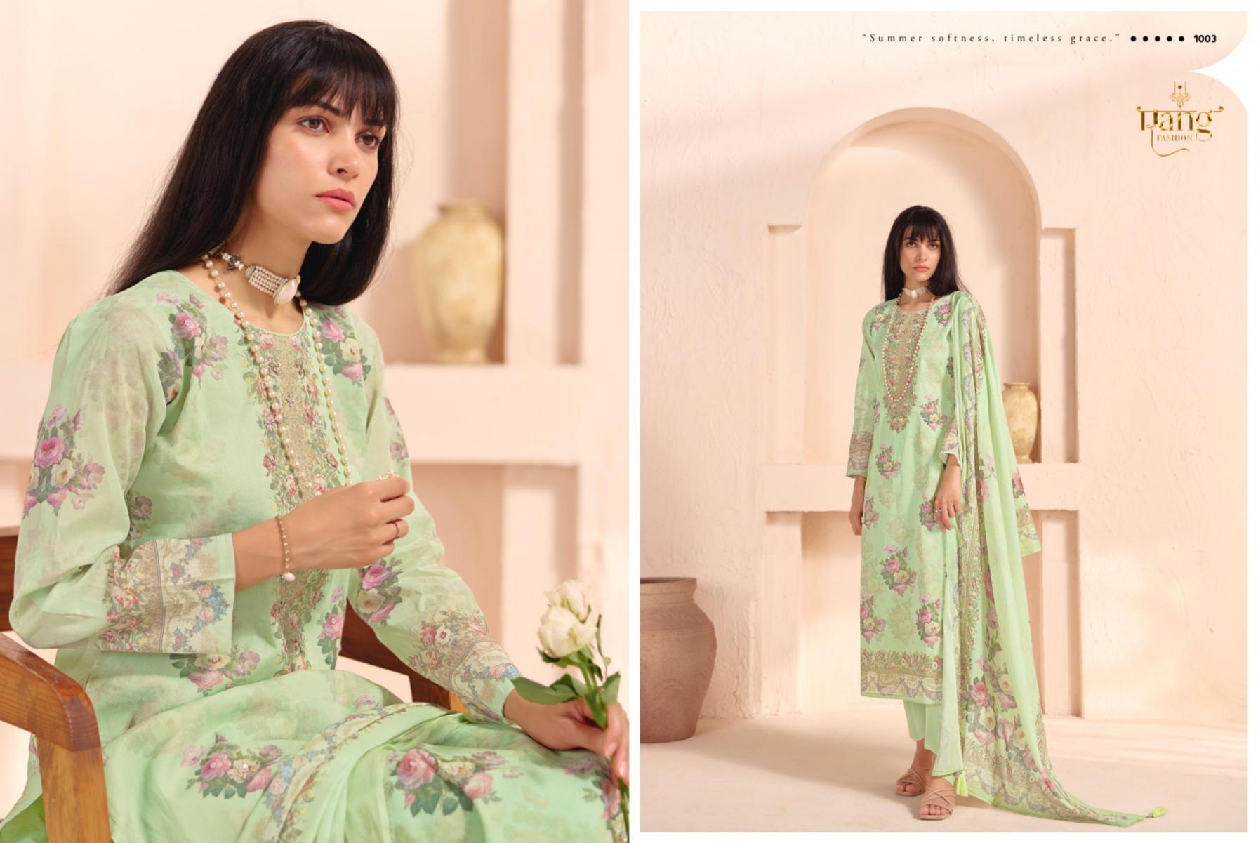 | Name: | Rang Casabella Series 1001-1004 Pure Organdy Digital Print With Hand Work Wholesale Suit |