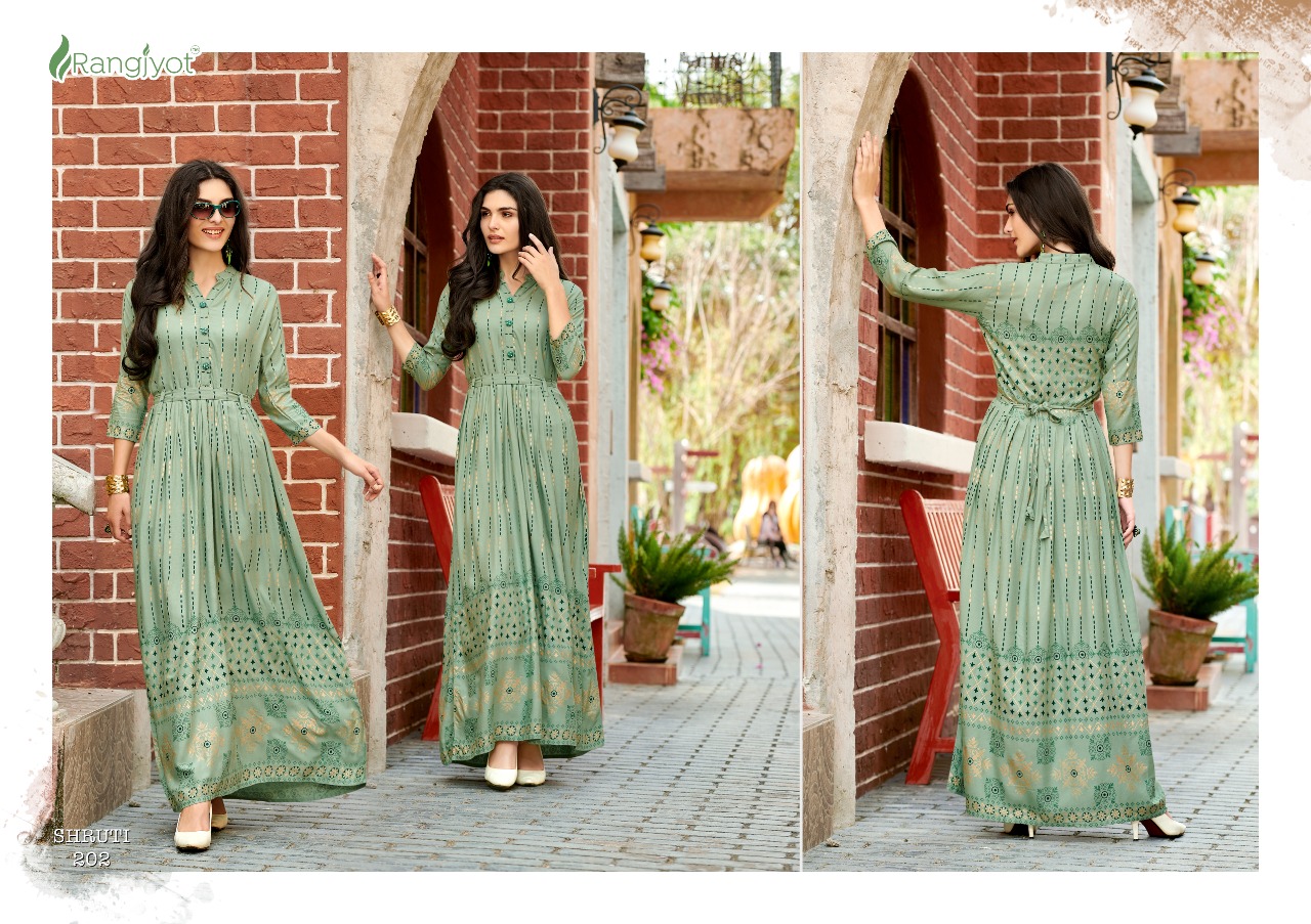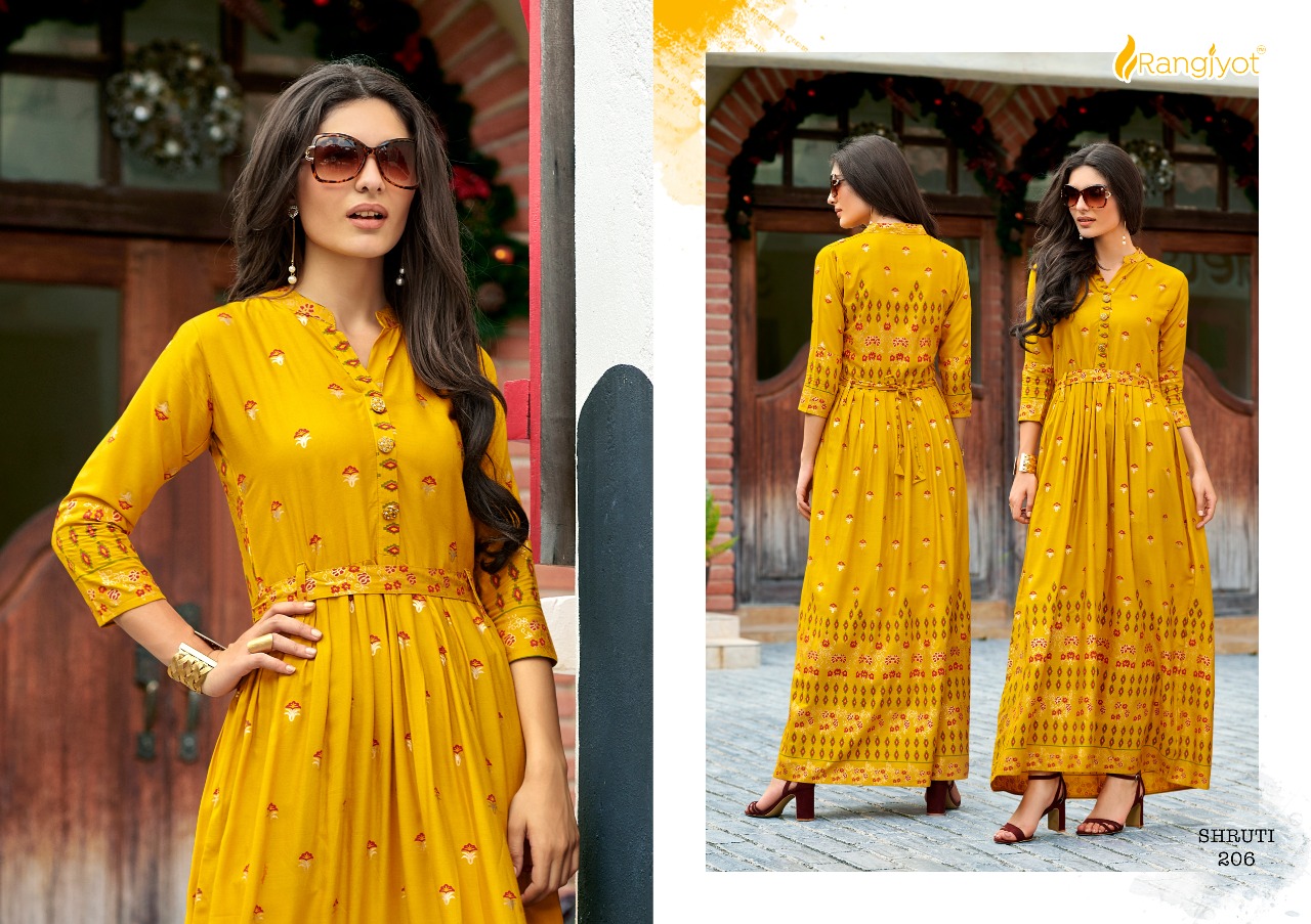 | Name: | Rangjyot Shruti Vol 2 Rayon Designer Long Kurtis |