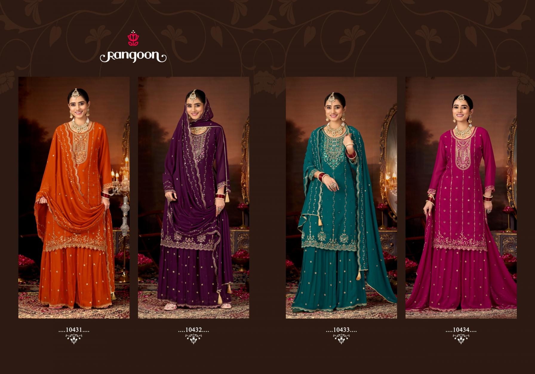 | Other Details: | Rangoon hitting market with exclusively trending series of Catalogs 🔸 Fabric Details 🔸 ▪️Top:- Georgette With fancy work & Hand mirror & Full Inner. ▪️Bottom:- Georgette With fancy work lace & Full Inner Sharara ▪️Dupatta:- Georgette With Fancy Heavy Dupatta work & Four side Latkan ▪️Total Design:- 04 ▪️Size:- M, L, XL, XXL, 3XL Rate:- 1299/- ⏰Dispatching 1 to 2 days later |