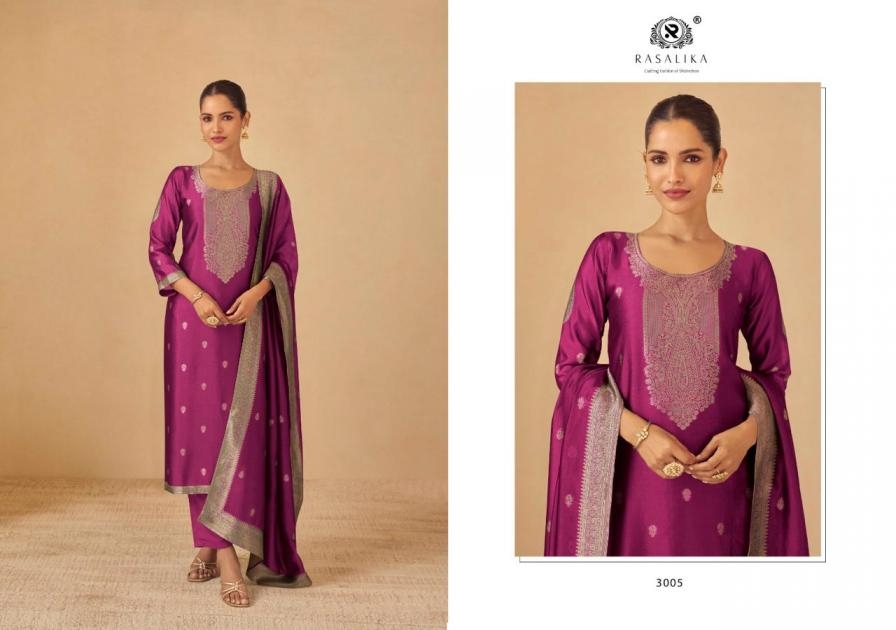 | Name: | Rasalika Mumtaz Series 3004 To 3008 Attractive Viscose Silk Jacquard Readymade Suits In Wholesale Surat |