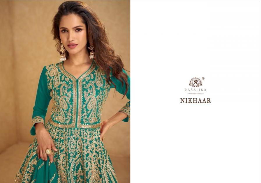 | Name: | Rasalika Nikhaar Series 4101-4104 Chinon Silk Wholesale Suit In Surat | |